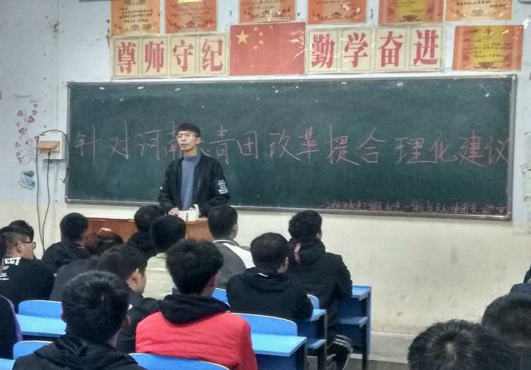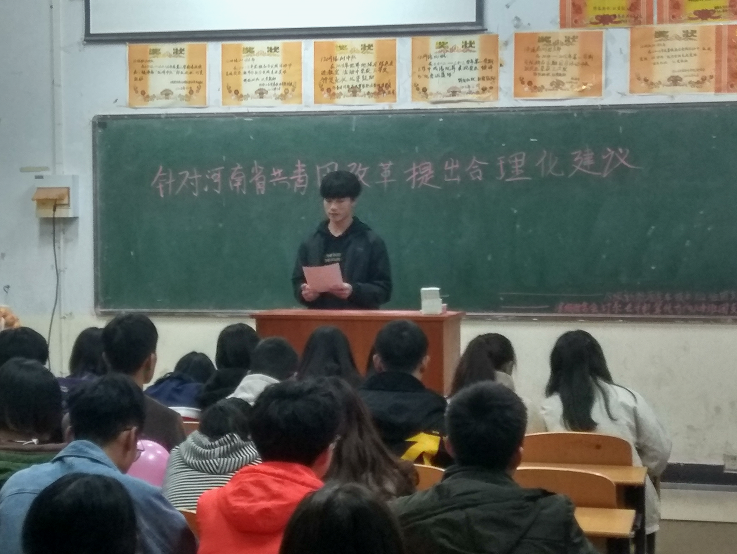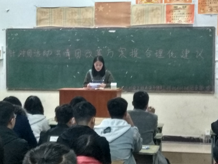 近日,共青团中央、教育部联合印发《高校共青团改革实施方案》,在共青团改革大局中推进高校共青团改革创新,切实加强和改进高校共青团各项工作和建设。11月7日下午机电工程系在1号教学楼举办了“针对团活动共青团改革提出合理建议”为主题的团活动。