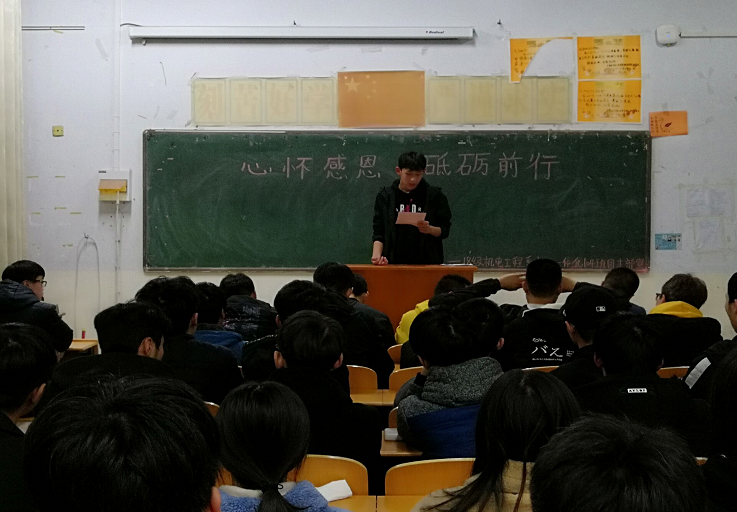 懂得感恩,是收获幸福的源泉。曾听说过这样一句令人印象深刻的话:“人,空手而来,空手而回,一切都是世界的恩赐。这些恩赐没有一样是坏的,我们应该心怀感恩。2018年11月21日机电系学生在一号楼开展以“心怀感恩,砥砺前行”为主题的团学活动。
