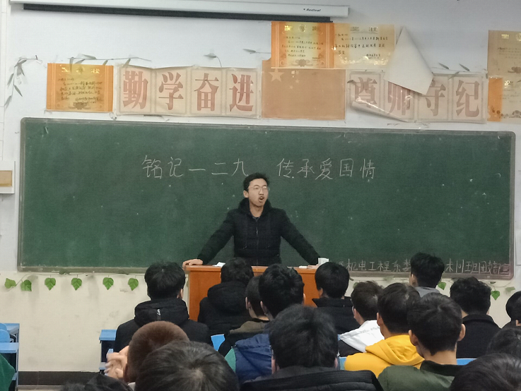 忘记国家历史就如忘记国家被侵略的屈辱。机电工程系于2018年12月5日下午,在一号教学楼开展以“铭记一二九 传承爱国情”为主题的团活动。