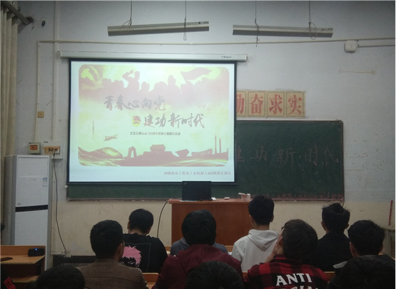 近日,机电工程系于2019年4月10日下午,在一号教学楼开展以“青春心向党,建功新时代”为主题的团学活动。利用主题团课、主题团日活动、志愿服务等多种式,深入学习宣传贯彻习近平新时代中国特色社会主义思想和党的十九大精神,自觉培育和践行社会主义核心价值观,弘扬以爱国主义为核心的伟大民族精神。