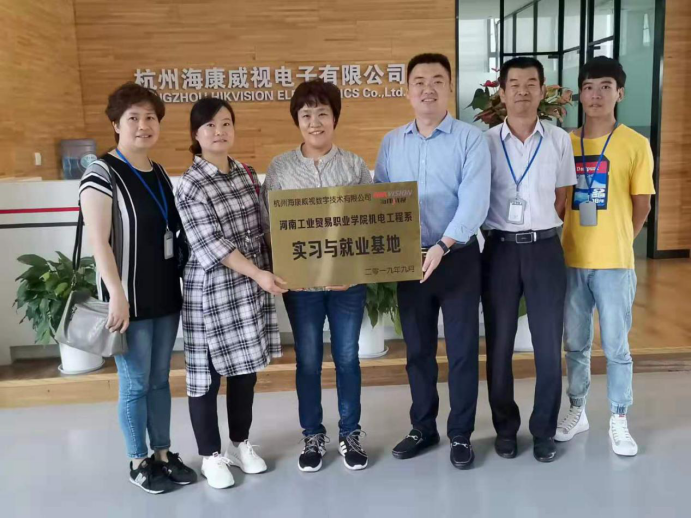 9月21日,周主任代表河南工业贸易职业学院,跟海康威视数字技术股份有限公司负责人建立校企合作基地。海康威视是全球视频监控数字化、网络化、高清智能化的见证者、践行者和重要推动者。连续六年(2011-2016)蝉联iHS全球视频监控市场占有率第1位,2016-2017年,《安全自动化》公布的“全球安防50强”榜单中,蝉联全球第1位。