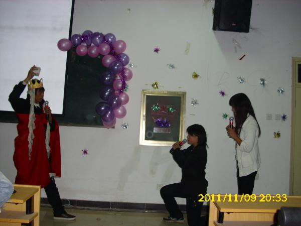 2011年11月9日晚,河南工业贸易职业学院在办公楼招聘会议室举行了第四届相声小品大赛,出席本次比赛的评委是七系负责人,成员有10级和11级学生组成。
