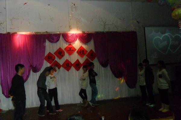 旧岁乘风传捷报,新年飞雪送征程。去岁欣欣丰硕果,今年跃跃绘宏图。2012年12月20号晚上机电系在报告厅一楼举行了一场盛大的元旦晚会。莅临晚会的领导有李伟老师、张老师、七系负责人等等。