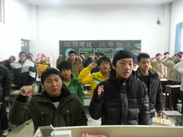 为了积极响应学校的号召,遏制学生考试作弊、违纪的处理办法,河南工业贸易职业学院机电工程系于2013年1月8日早上8点在教学楼进行了“河南工业贸易职业学院大学生诚信考试宣誓”。