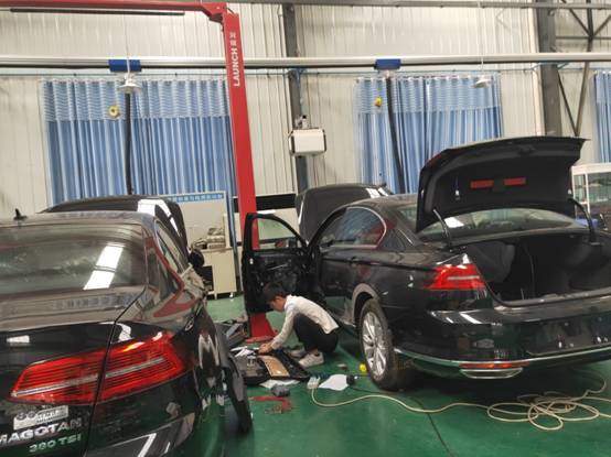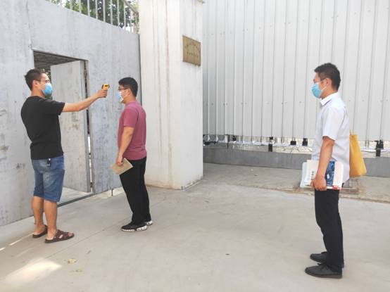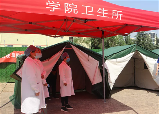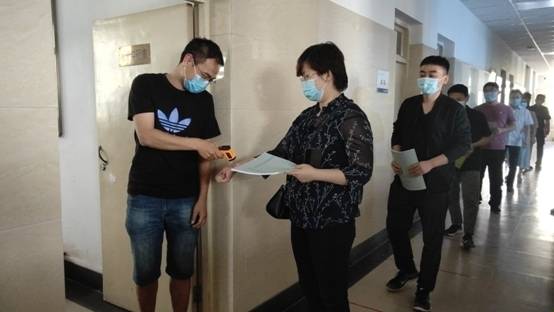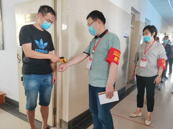 进门:教学楼或实训场地大门两侧设置检测通道,每个通道上都贴地贴,要求前后距离保持一米,在老师的有序引导下,每一个学生都要查看健康码,上交健康卡,填写健康状况登记表,测量体温,体温正常确认信息后才能进入教室。如果发现体温异常,老师会将学生带至临时隔离点,进一步测量体温,一旦确认学生发热,立即与定点医院联系就诊。
