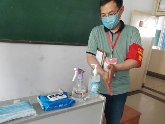 课后:课后,排队有序离开教室,老师用手持式酒精消毒喷壶,对教室进行喷洒消毒。