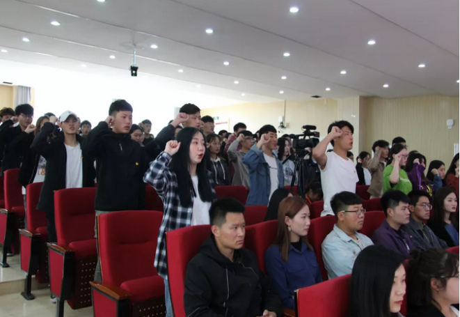 75名新团员面对团旗进行了庄严的入团宣誓,150名跨入18岁门槛的青年们紧握右拳,庄严宣誓:从今天起要牢记使命,勇敢担责,在担当中历练,在尽责中成长,让青春在新时代广阔天地中绽放,让青春在为祖国、为人民、为民族、为人类的奉献中焕发出更加绚丽的光彩。