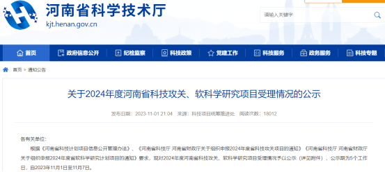 近日,根据河南省科学技术厅《2024年度河南省科技攻关项目拟立项公示》的通知,我院4个项目获批2024年度河南省科技攻关项目立项,总立项数创历史新高。