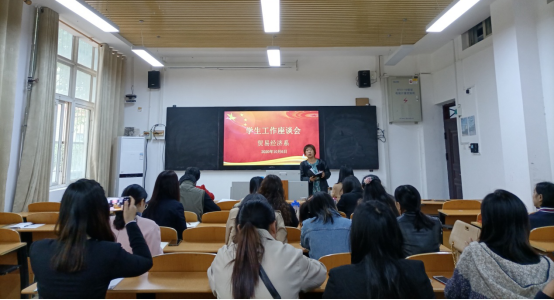 10月6日,经济贸易学院在龙湖校区2103教室举办学生工作座谈会。座谈会上,经济贸易学院20余名辅导员深入学习贯彻全国高校思想政治工作会议精神和习近平总书记教育思想,探讨一线学生工作队伍如何更好地开展大学生思政工作、班级管理工作。辅导员们热烈发言,怀着激动的心情分享陪伴大学生成长的故事和案例,倾诉对辅导员工作的热爱和对学生们的关心,鼓励新任辅导员勇挑重担,做好青年大学生的知心朋友,当好指明灯、引路人。