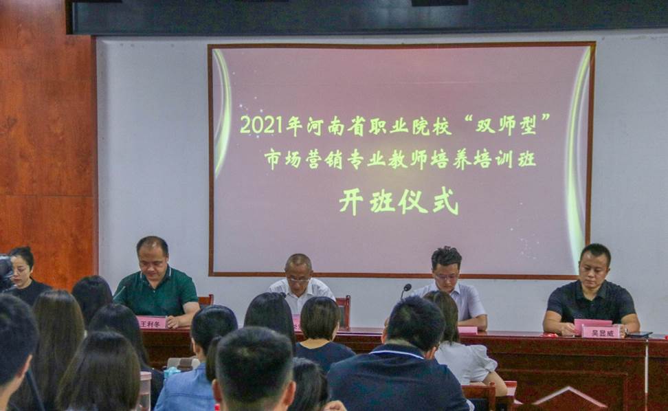为全面贯彻全国职业教育大会精神,落实《职业教育提质培优行动计划(2020-2023)》、《全面深化新时代教师队伍建设改革的意见》文件精神,践行师德师风建设、课程思政育人格局构建、“双岗”教师培训能力提升、“岗课赛证”综合育人等重点内容的实施,加快“双师型”师资队伍建设,2021年河南省职业院校“双师型”市场营销专业教师培养培训开班仪式在河南工业贸易职业学院隆重举行。
