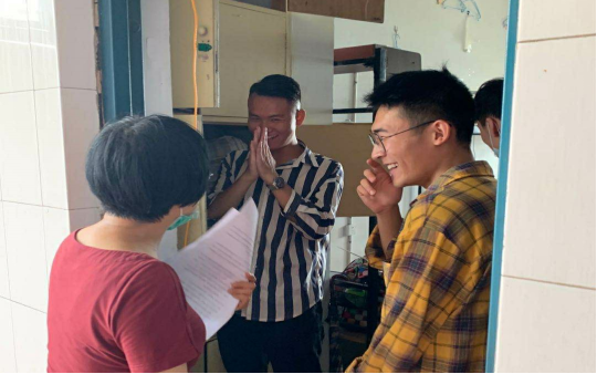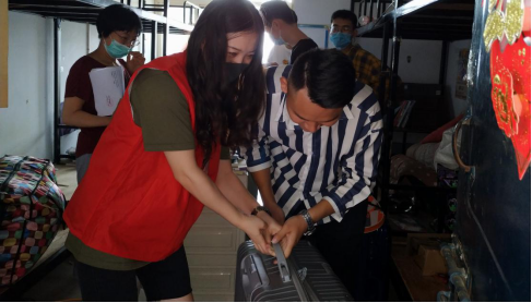 贸易经济系安排老师们一对一地陪伴同学们到宿舍楼登记入楼手续、整理和搬运行李、发放餐票、帮助同学们运送行李直至离开校园。
