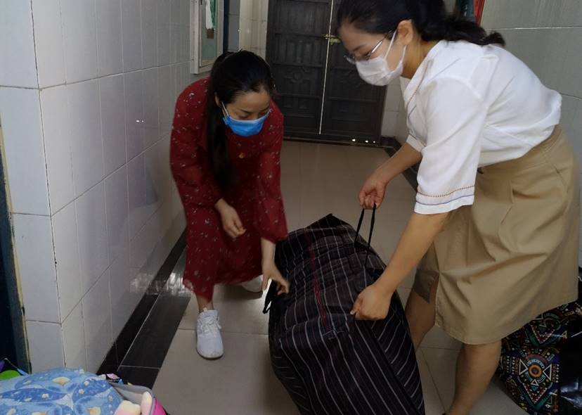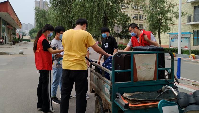 考虑到毕业生返校收拾行李过程中,学生们普遍行李较多,所住楼层较高,不容易整理,老师们亲自帮学生打包行李。