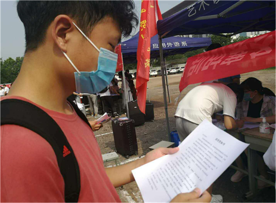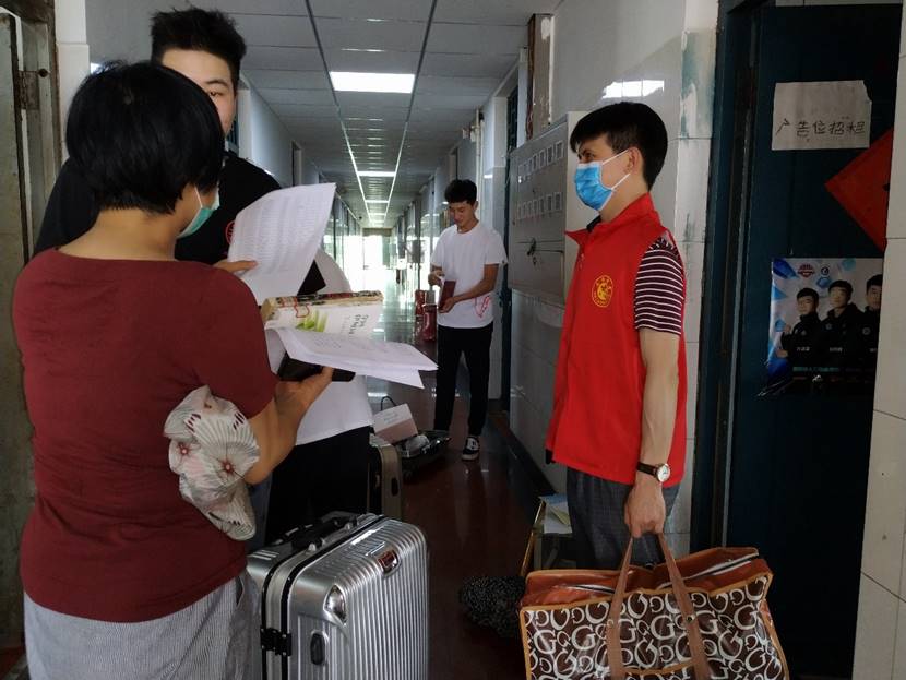 为迎接学生安全返校,负责接待的老师们一大早早就布置好接待场地,准备好防疫物资,迎接学生们的到来,并到学生返校过程中的问题进行一一指导与讲解,并配合龙湖镇派出所对到达的学生发放安全手册,讲解安全防疫知识。