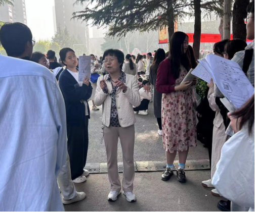 4月1日清晨,经济贸易学院党总支书记冯力婉、院长张素勤、党总支副书记许晴晴、副院长潘娅媚以及辅导员窦瑞珠来到现场,鼓励考生调整心态,认真应考,如遇突发事件及时联系老师。
