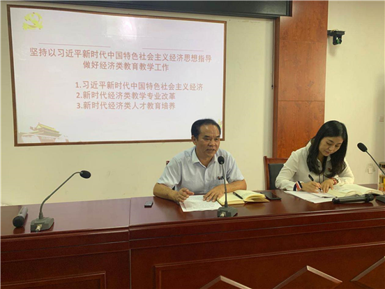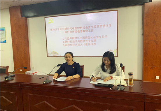 系党总支副书记冯力婉主持此次集中学习。冯力婉通过PPT展示,向同志们重点解读了习近平新时代中国特色社会主义经济思想提出的重大意义、主要特征和基本内涵。冯力婉指出,习近平新时代中国特色社会主义经济思想深刻总结了我国经济发展的成功经验,系统回答了新时代中国特色社会主义经济建设的时代背景、根本立场、政治保障、制度基础、主题主线、发展理念、实现路径、内外关系和工作方法等一系列重大问题,提出我国经济发展在进入新常态、转向高质量发展阶段,中国经济改革该怎么看,怎么干。作为新时代高校经济管理类专业教师,要深刻领会习近平新时代中国特色社会主义经济思想的内涵实质,用其精神指导我们的经济科学研究和教育教学工作,做好新时代经济类高职院校教学专业改革,创造新时代经济形势下高素质技能人才培养模式。
