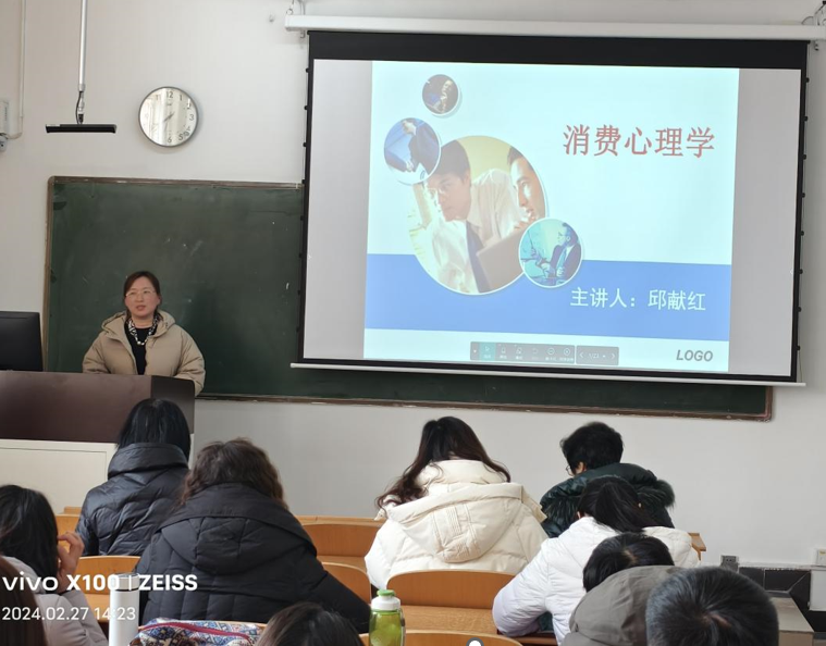 27日下午,经济贸易学院组织全体老师在1303对试讲中的优秀教师邱献红和李鑫进行观摩学习,并对《消费心理学》和《直播营销》两门课程进行集体备课研讨。两位老师的精彩讲授,让台下老师听得如痴如醉、收益匪浅。