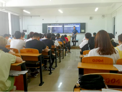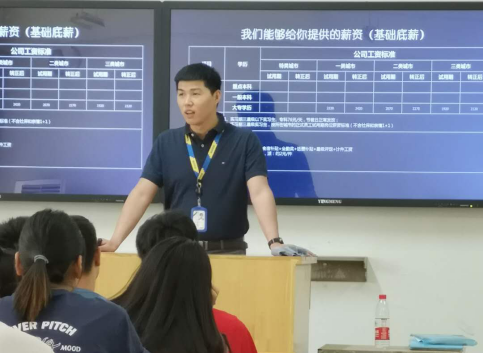 本次招聘会由张慧老师主持,由德邦河南分公司人事经理王沛丰展开宣讲,本专业104名学生全部到场,王经理为学生讲述了德邦的发展历程、企业文化、招聘岗位以及薪资福利,热情地对待前来咨询和招聘的学生,对学生提出的问题耐心讲解。学生热情高涨,积极参与其中。