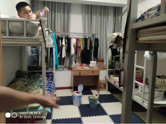 在整个工作园区,吃、住、工作井然有序,人保上街营业部在员工宿舍楼附近建有自己的餐厅,饮食安全、卫生且实惠,以自助餐形式提供了早餐、午餐、晚餐(合计17元)。宿舍基本都是六人间,每个房间都带独立卫生间,配备有热水器、空调、衣柜、桌子、上下床等家具、家电,同学们对住宿条件也较为满意。旁边就是办公楼工作区域。