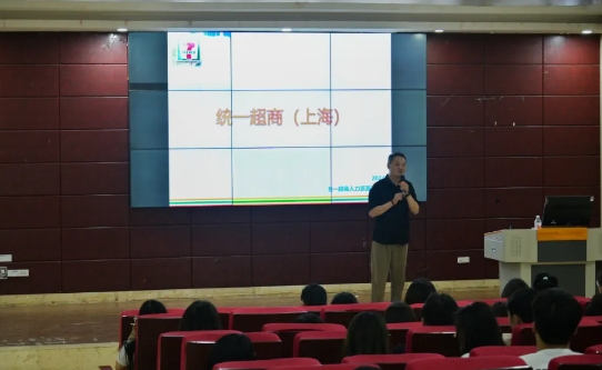 统一超商(上海)便利有限公司最后宣讲,该公司是知名便利店品牌7-eleven的运营方,企业宣讲人介绍了企业文化、企业人才培育及晋升计划、招聘岗位、薪资待遇、往届实习生发展等情况。