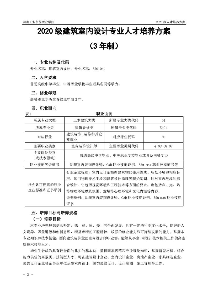 47.2020级建筑室内设计专业(3年制)人才培养方案