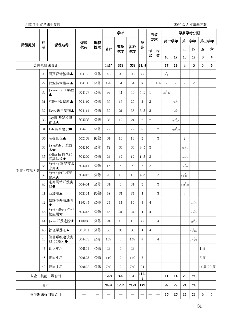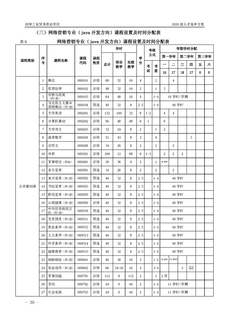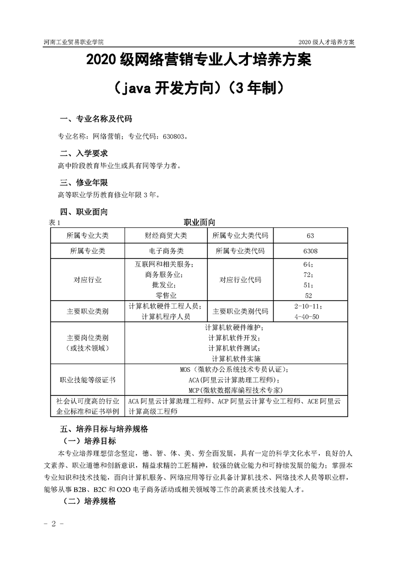 35.2020级网络营销专业(java开发方向)(3年制)人才培养方案