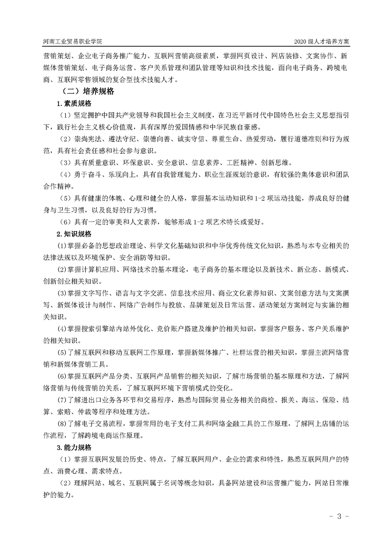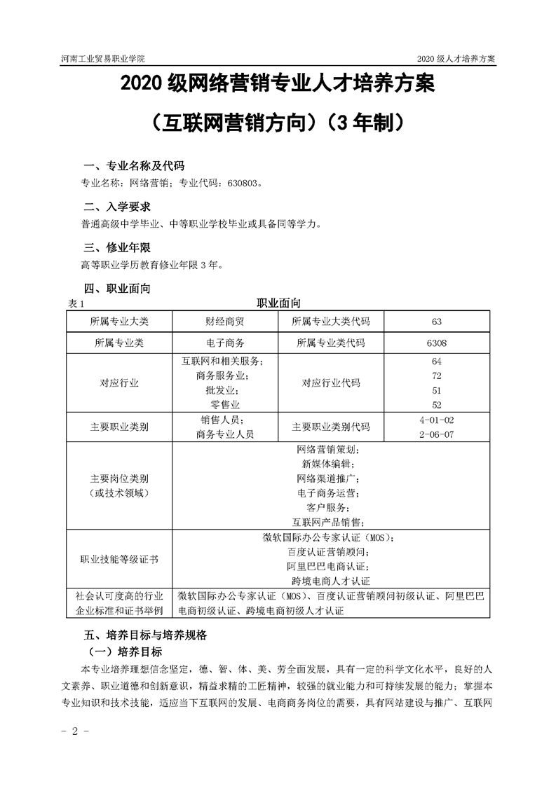 36.2020级网络营销专业(互联网营销方向)(3年制)人才培养方案
