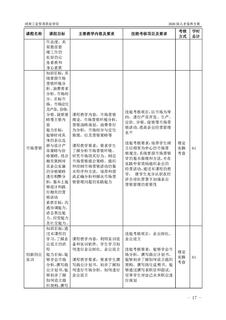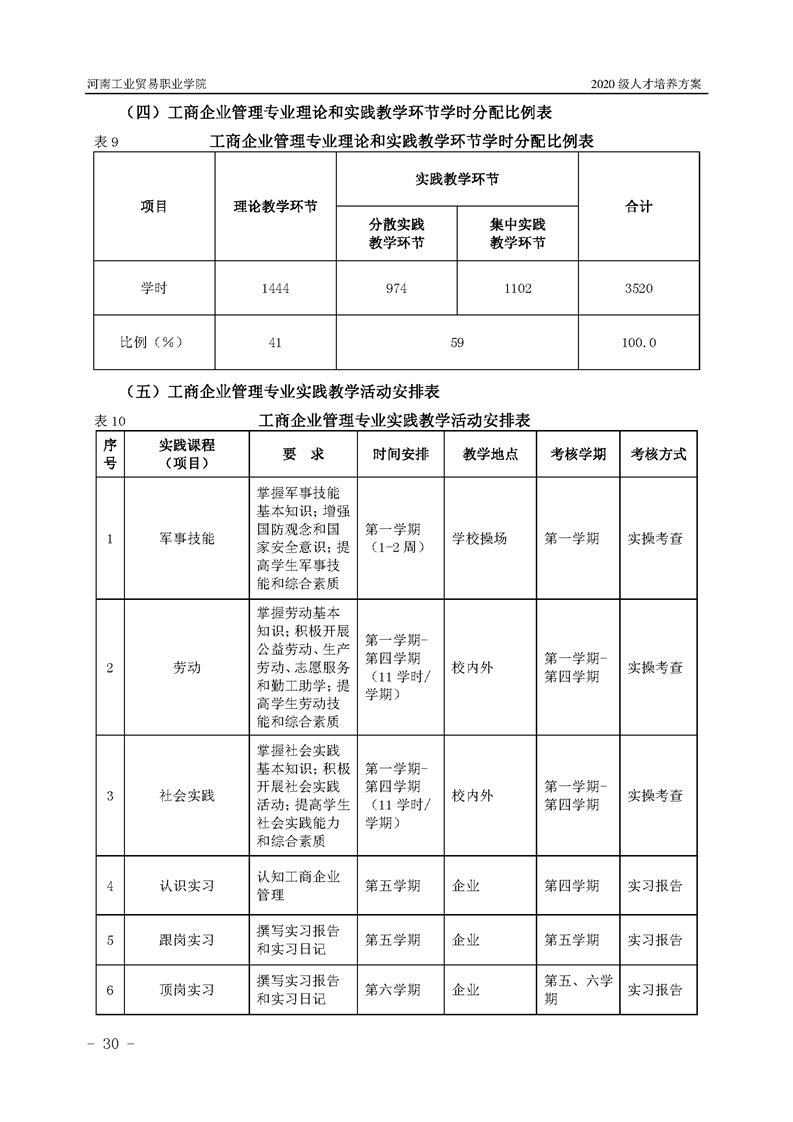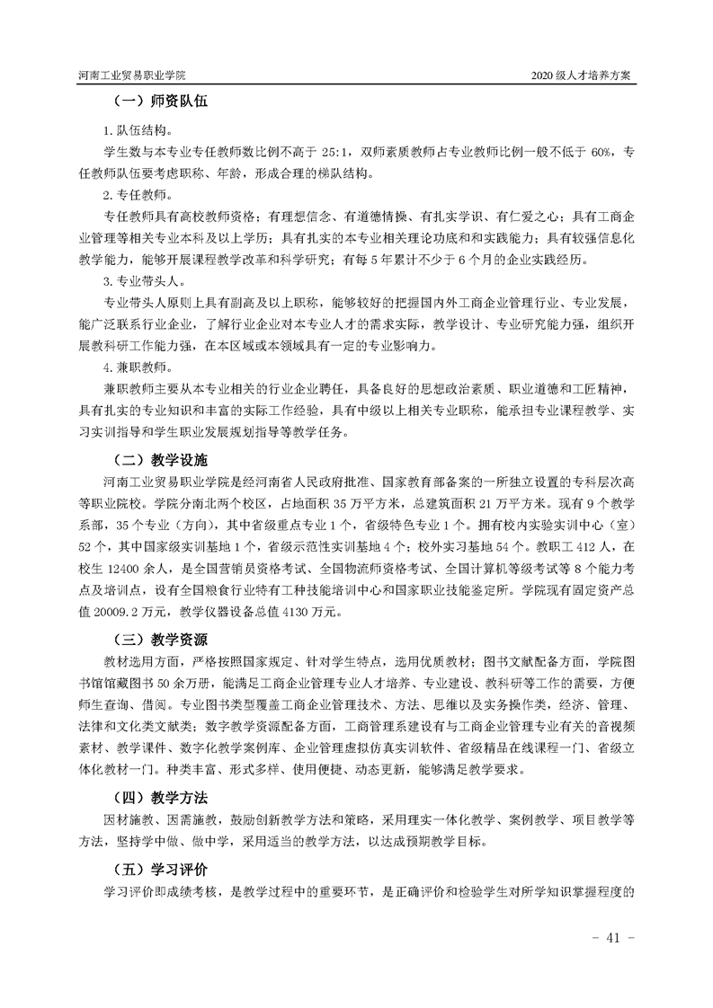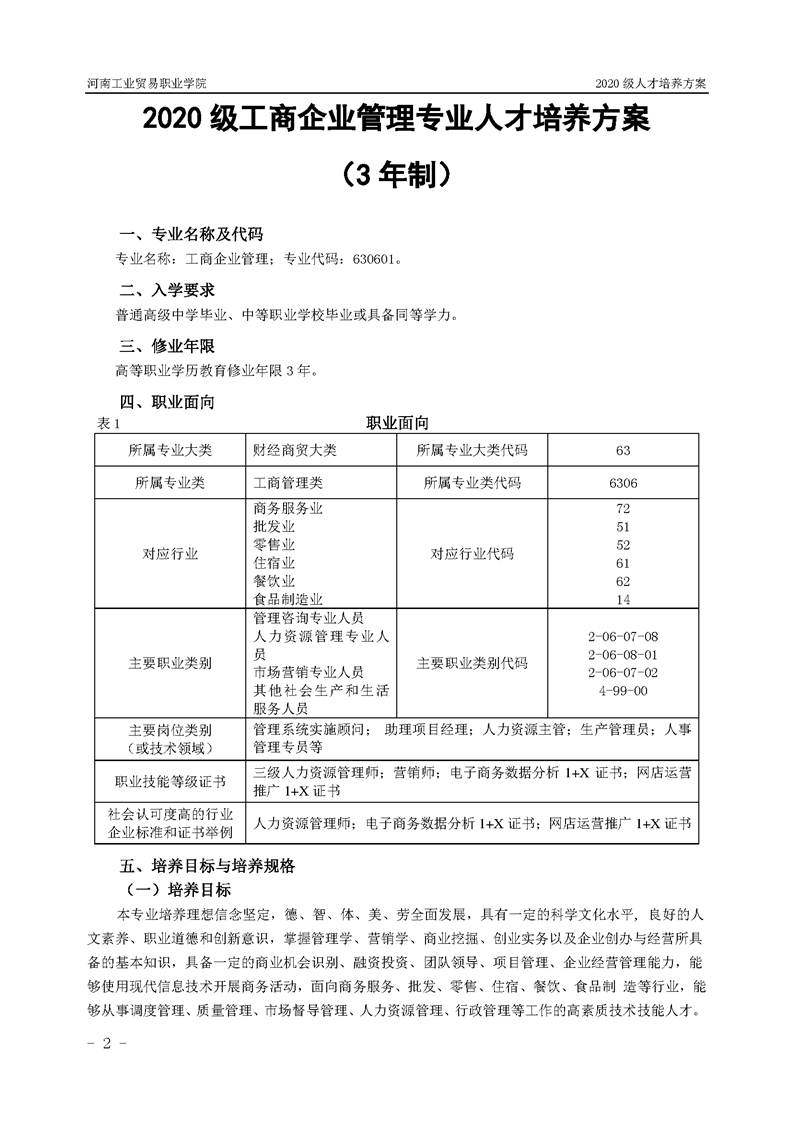 42.2020级工商企业管理专业(3年制)人才培养方案