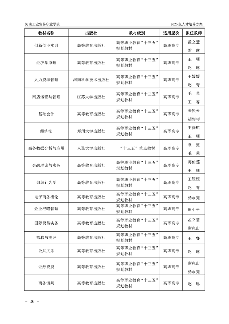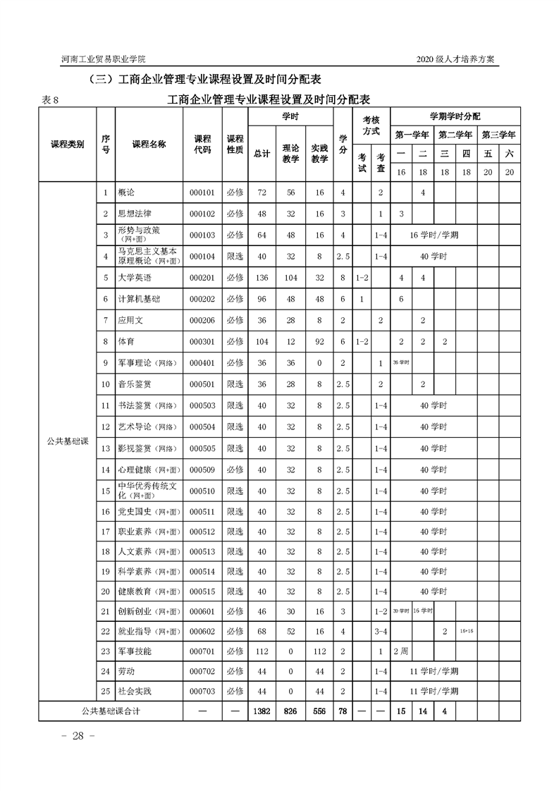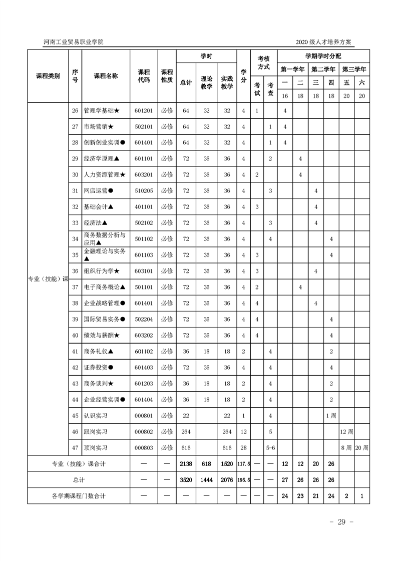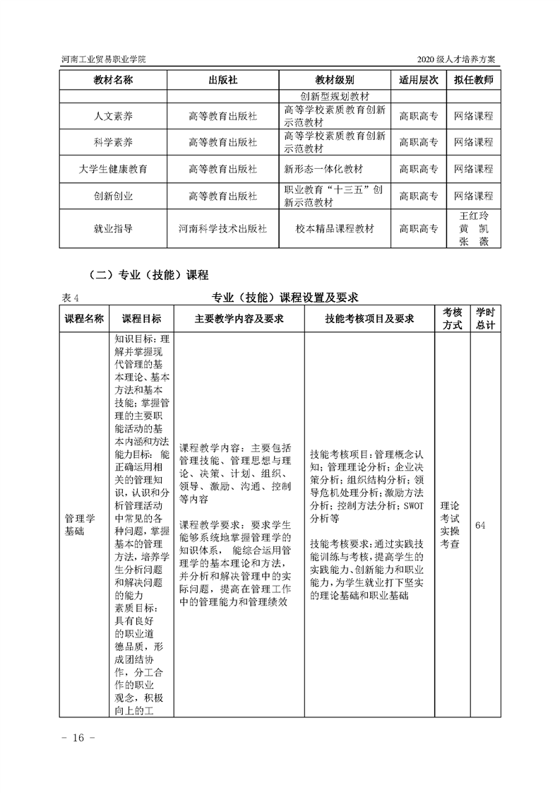 42.2020级工商企业管理专业(3年制)人才培养方案