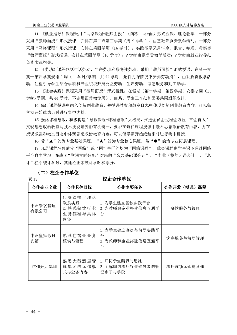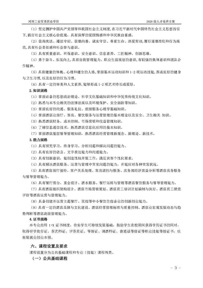 44.2020级酒店管理专业(3年制)人才培养方案