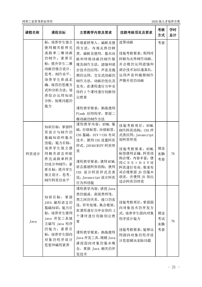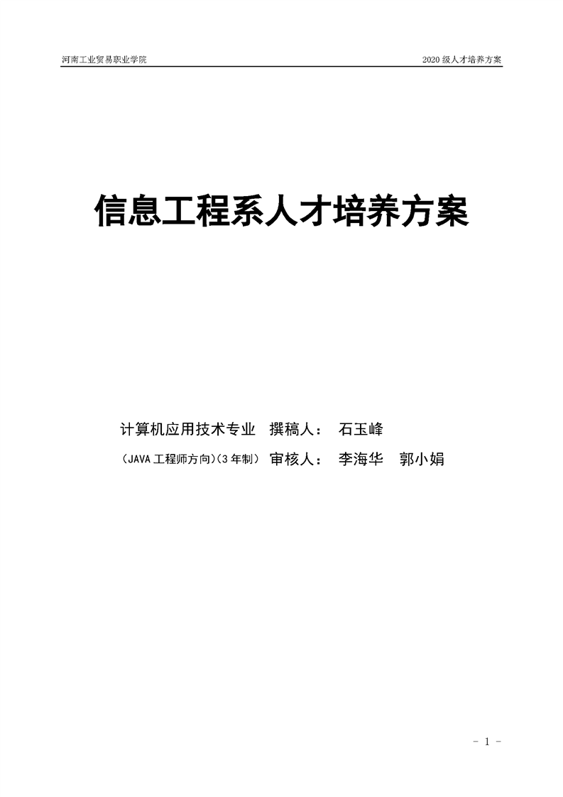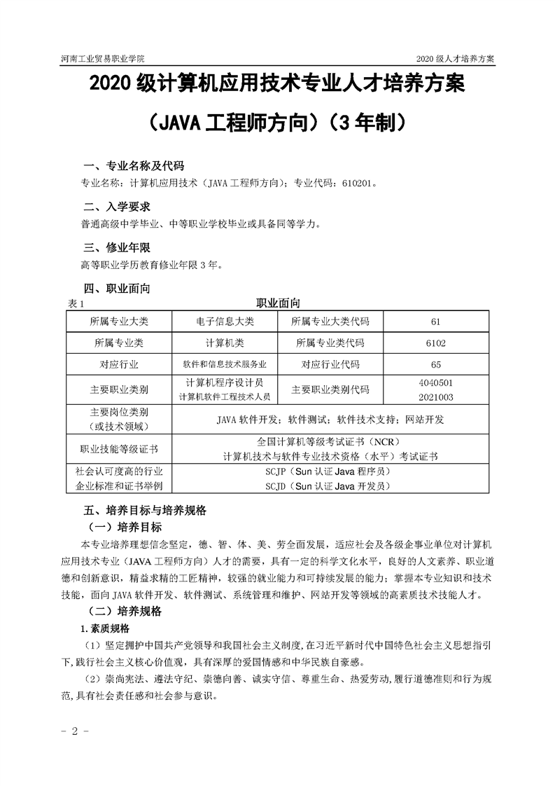 17.2020级计算机应用技术专业(JAVA工程师方向)(3年制)人才培养方案