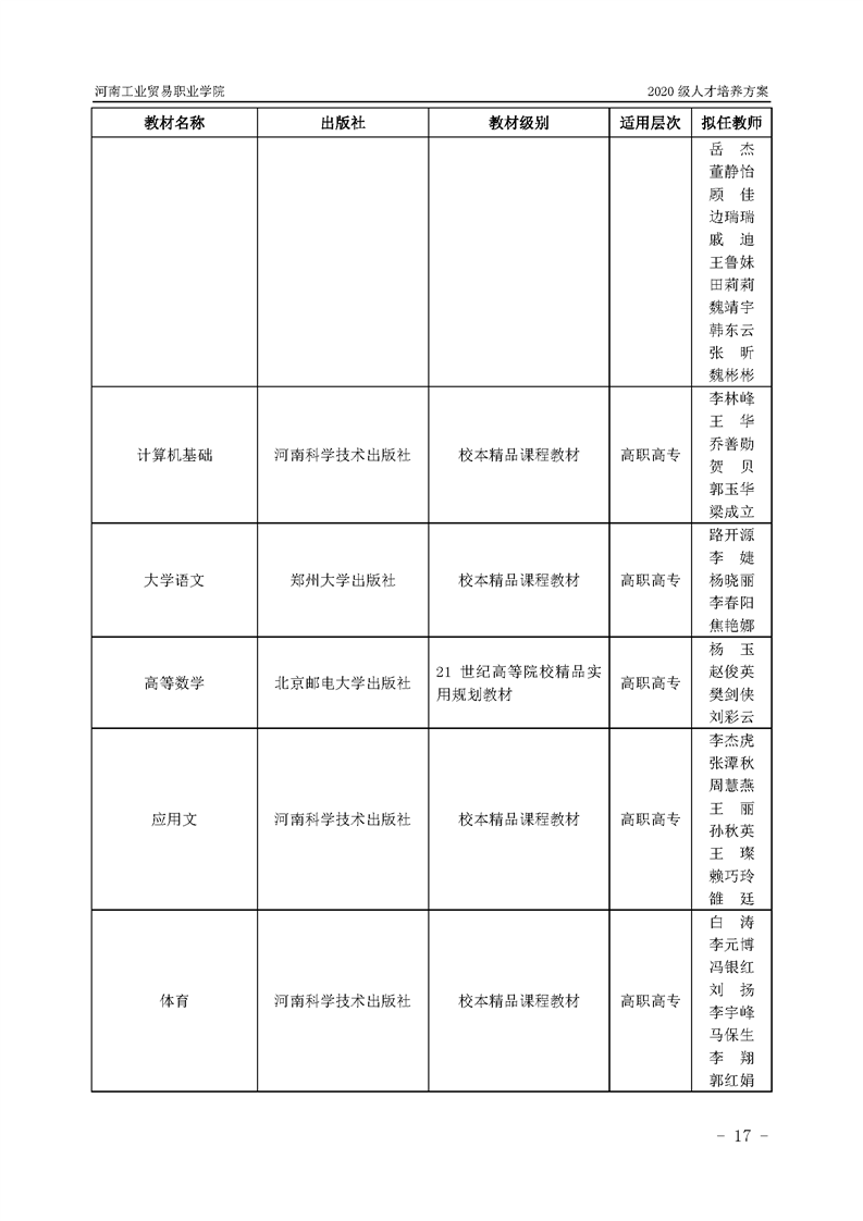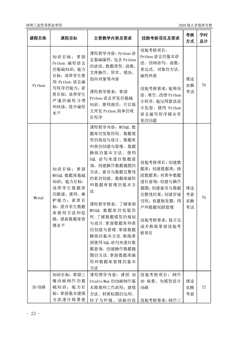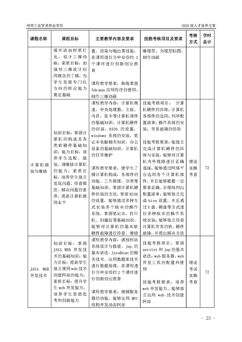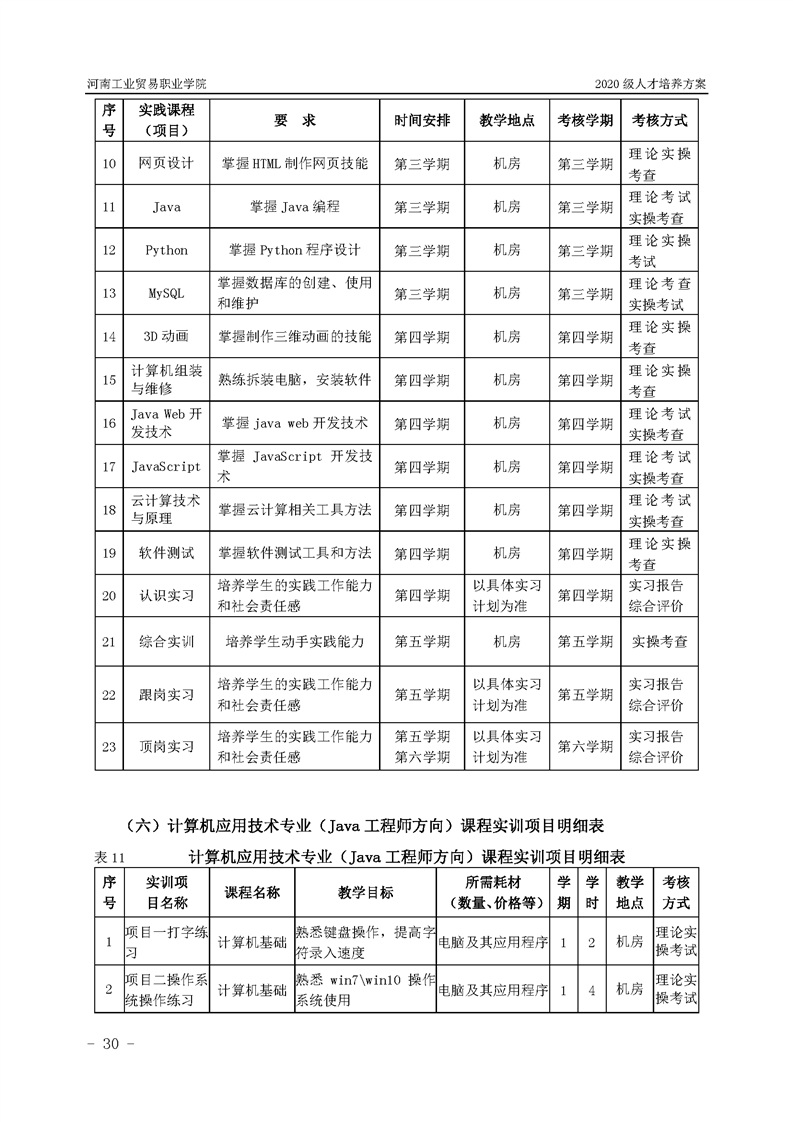 17.2020级计算机应用技术专业(JAVA工程师方向)(3年制)人才培养方案