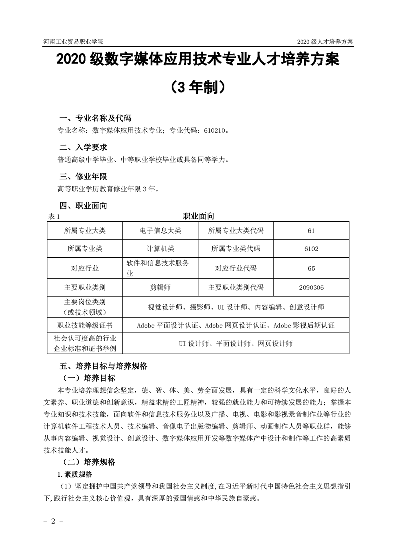 19.2020级数字媒体应用技术专业(3年制)人才培养方案