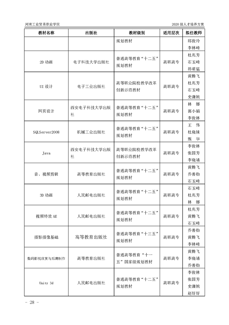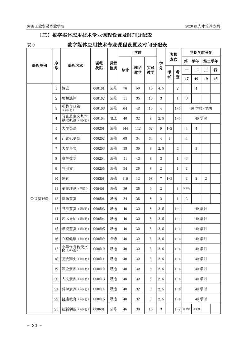 23.2020级数字媒体应用技术专业(2年制)人才培养方案