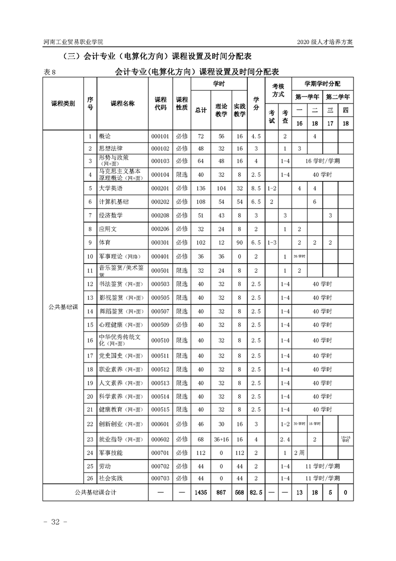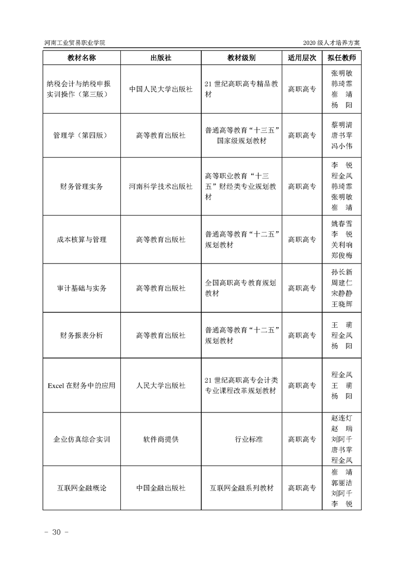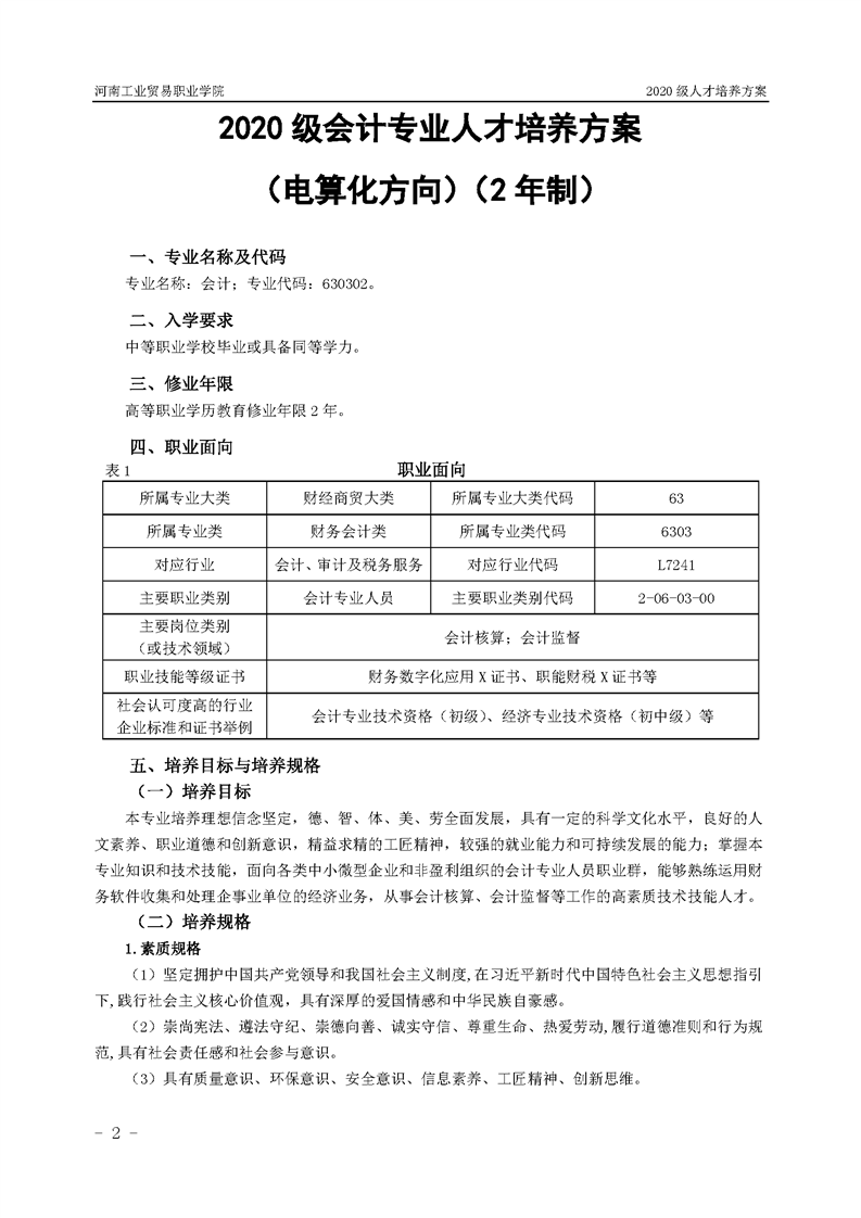 30.2020级会计专业(电算化方向)(2年制)人才培养方案