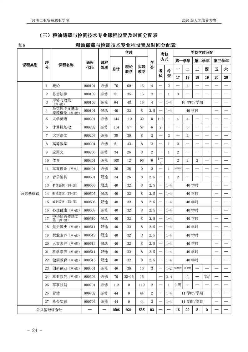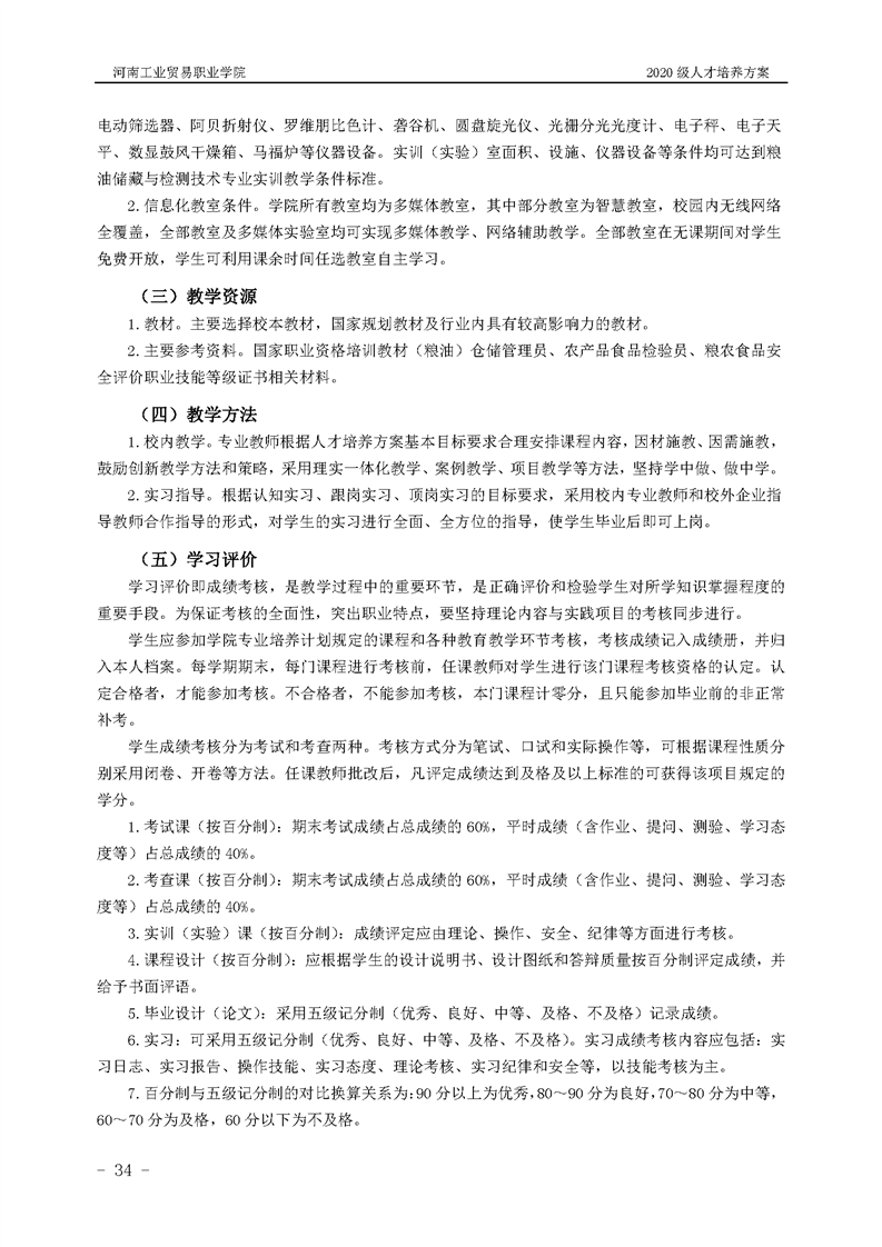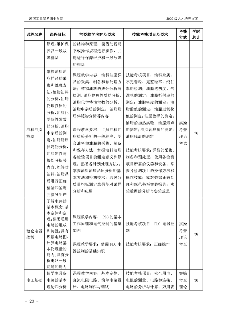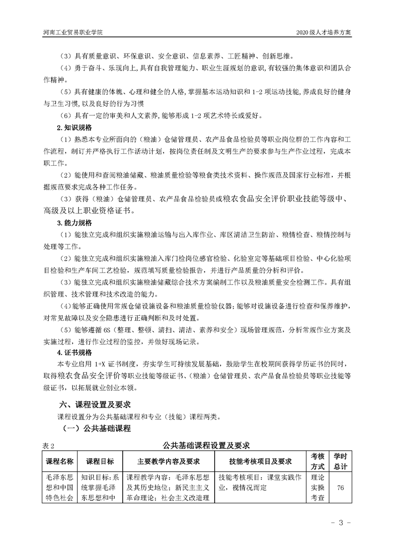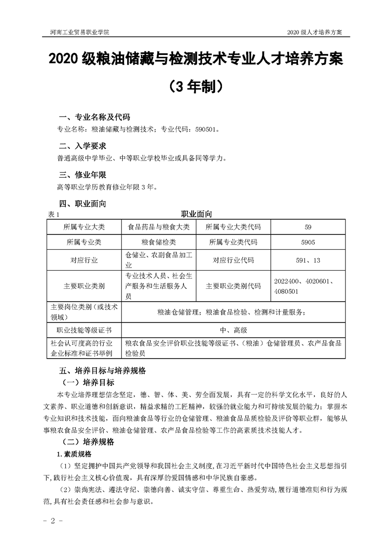 4.2020级粮油储藏与检测技术专业人(3年制)才培养方案