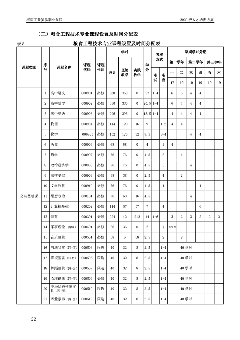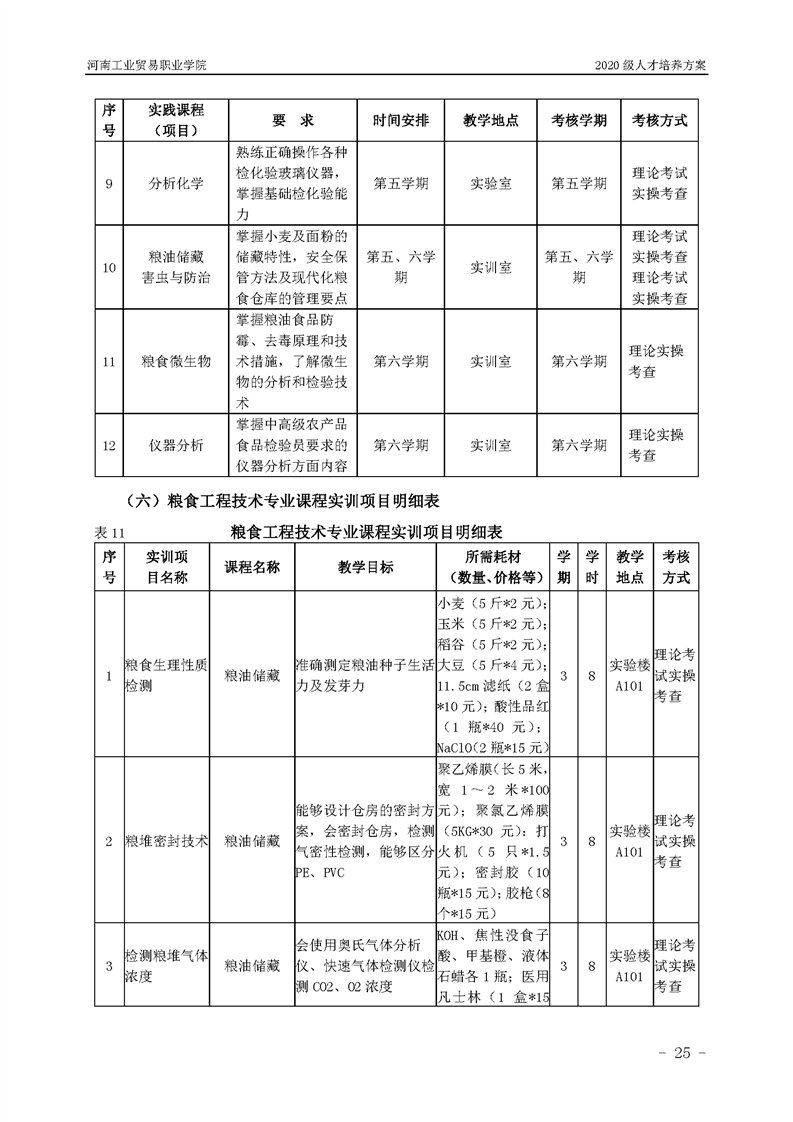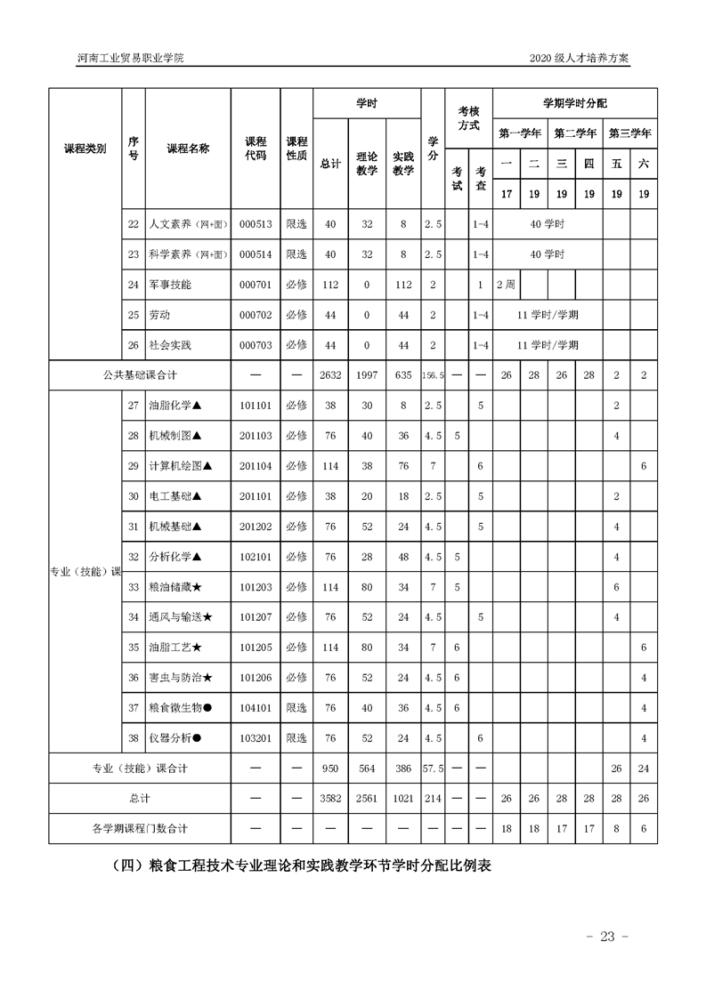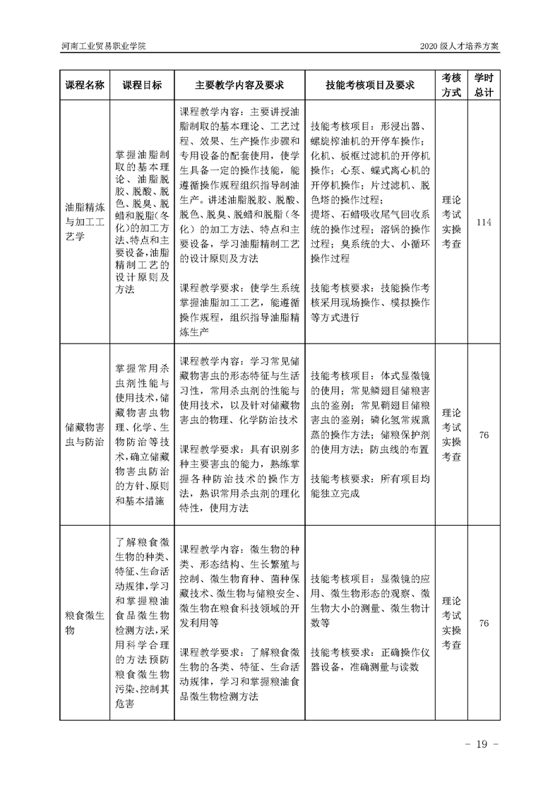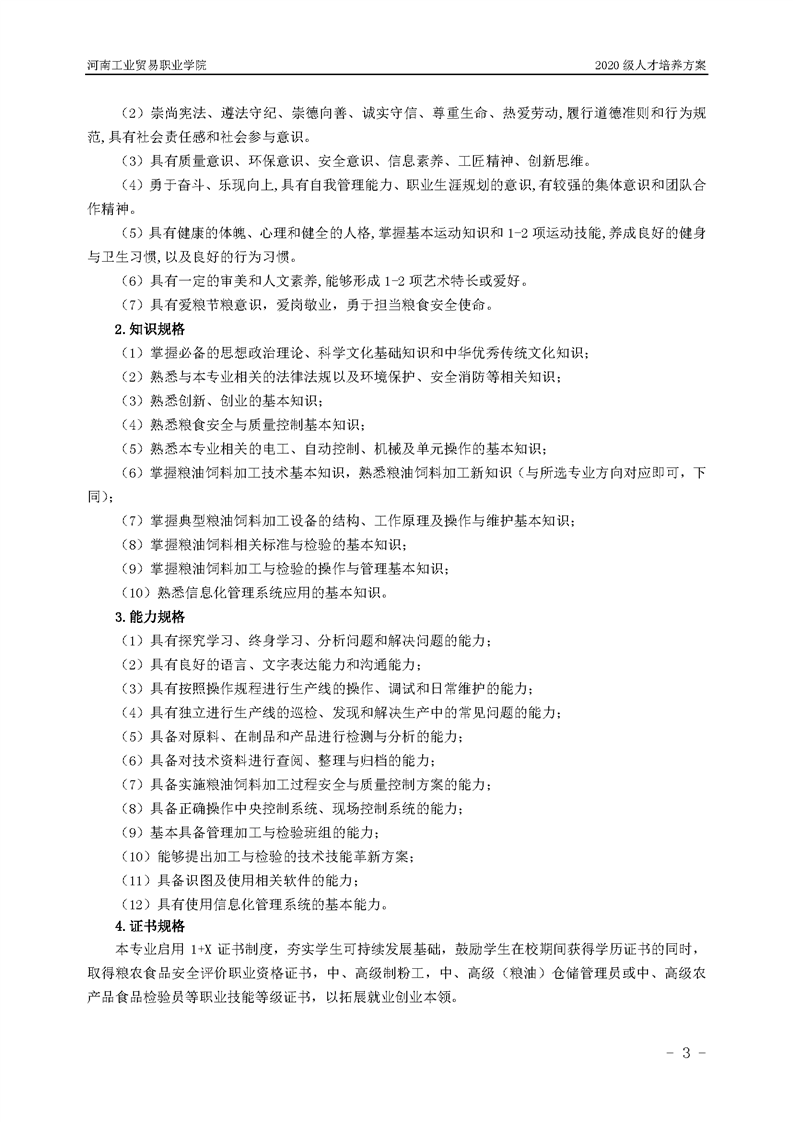 7.2020级粮食工程技术专业(五年一贯制前3年)人才培养方案