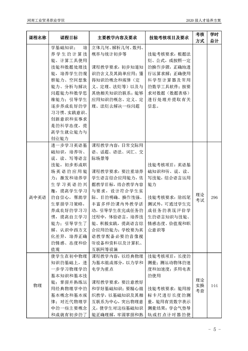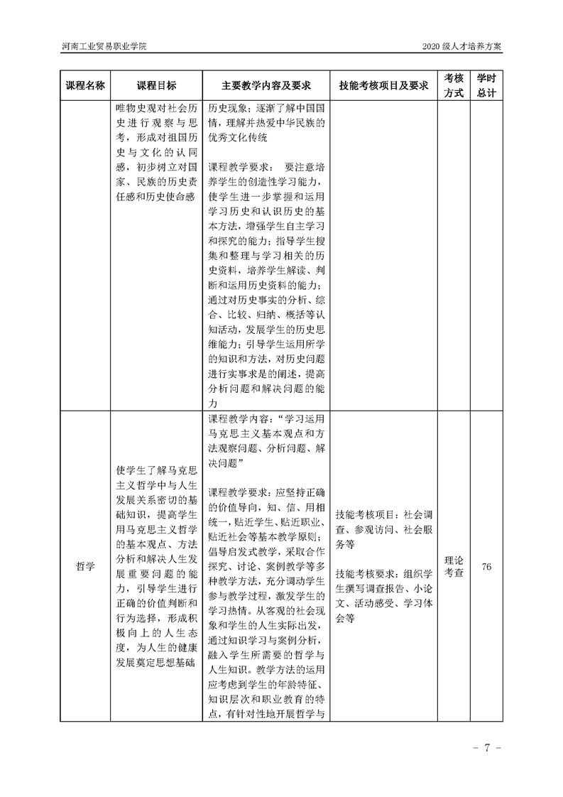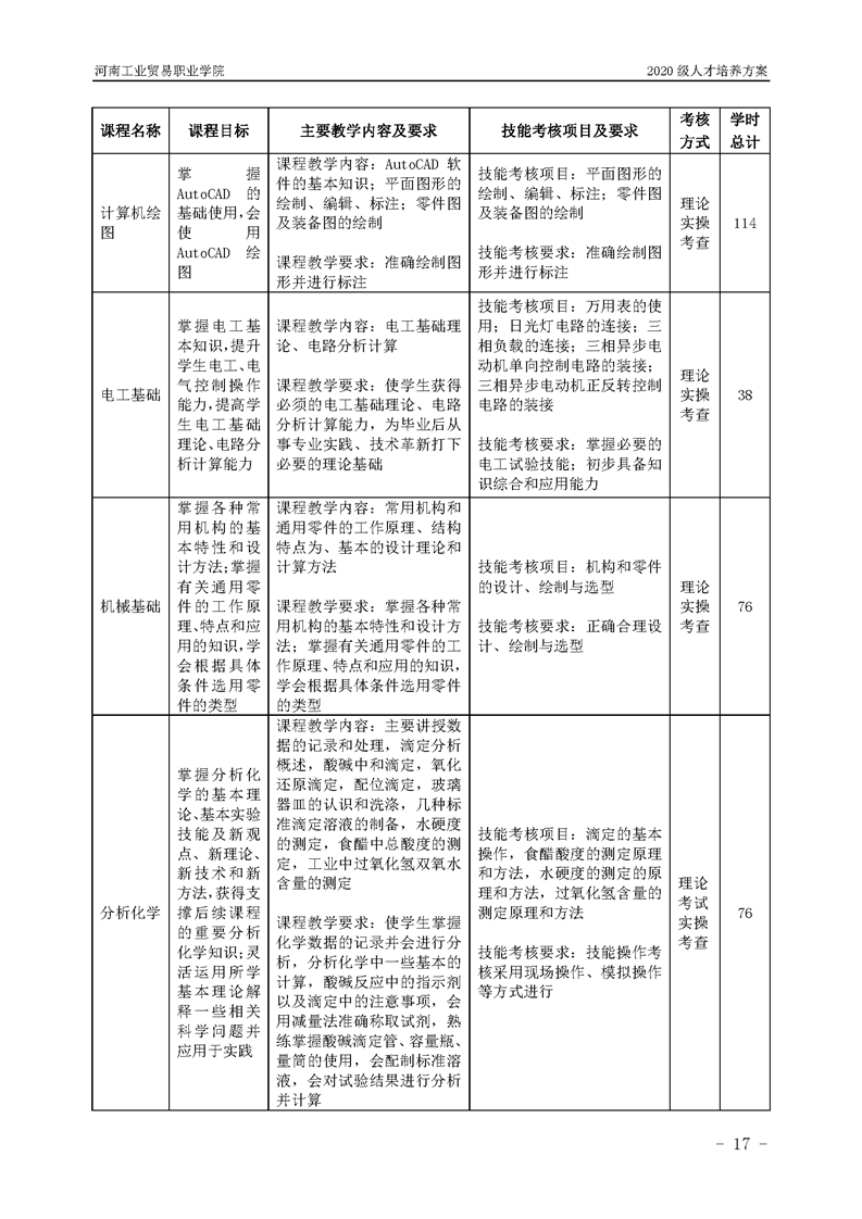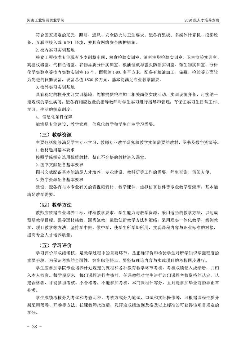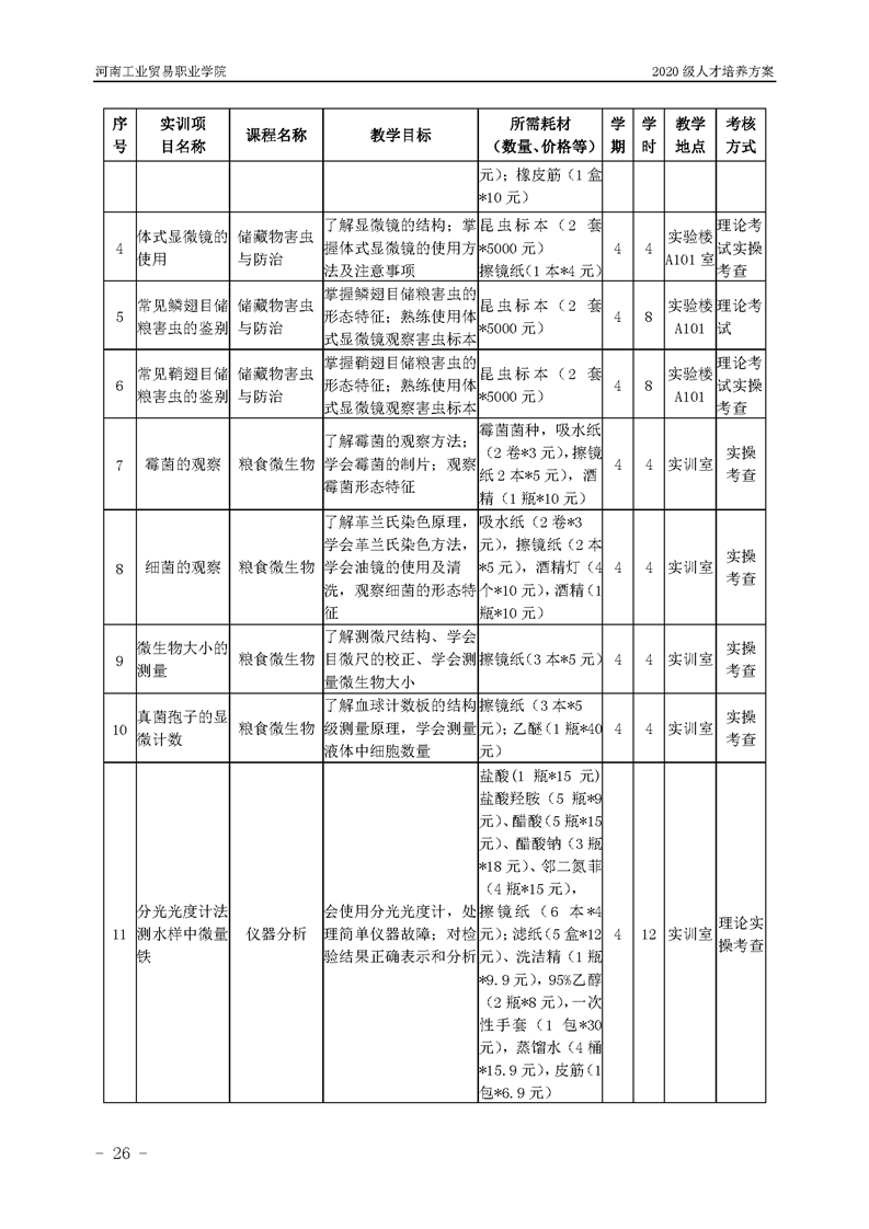 7.2020级粮食工程技术专业(五年一贯制前3年)人才培养方案