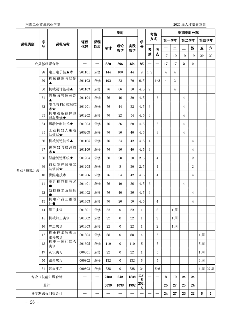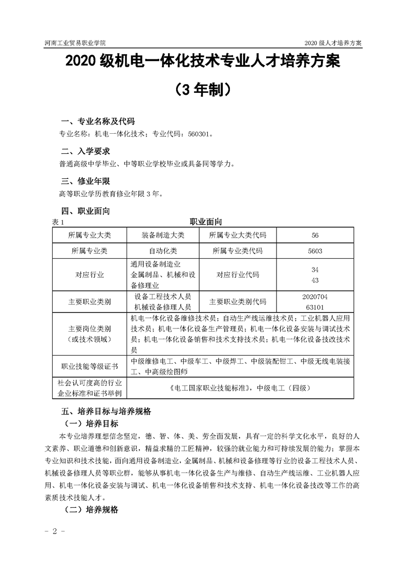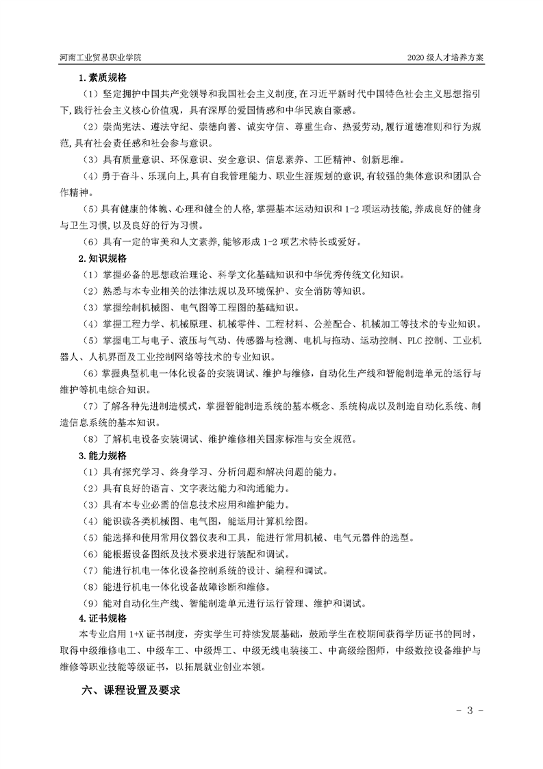8.2020级机电一体化技术专业(3年制)人才培养方案