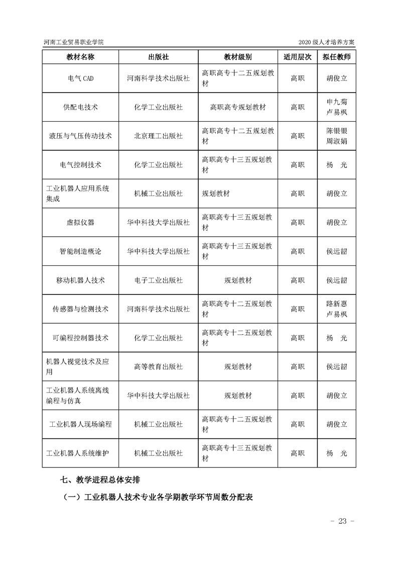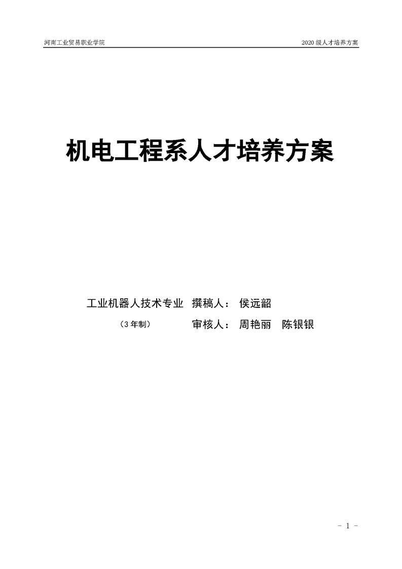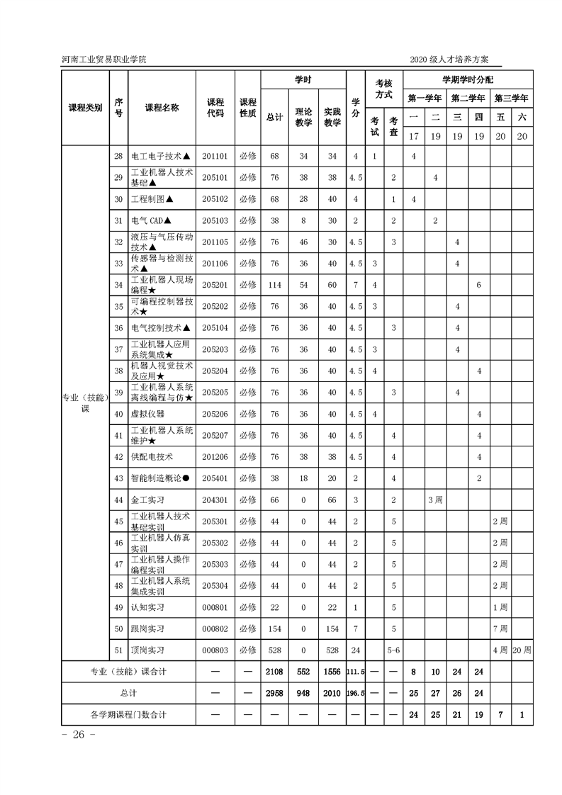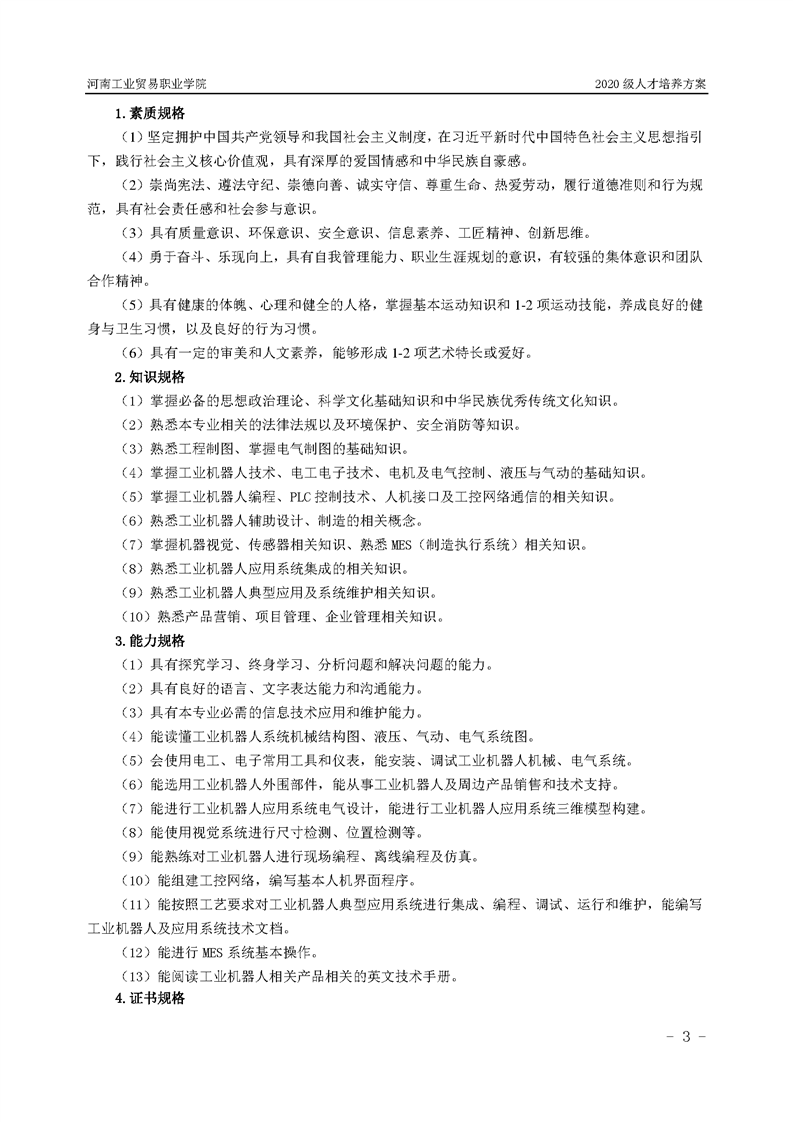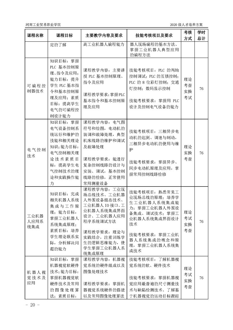 10.2020级工业机器人技术专业(3年制)人才培养方案