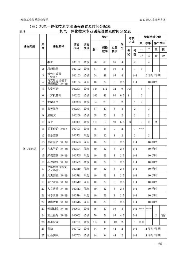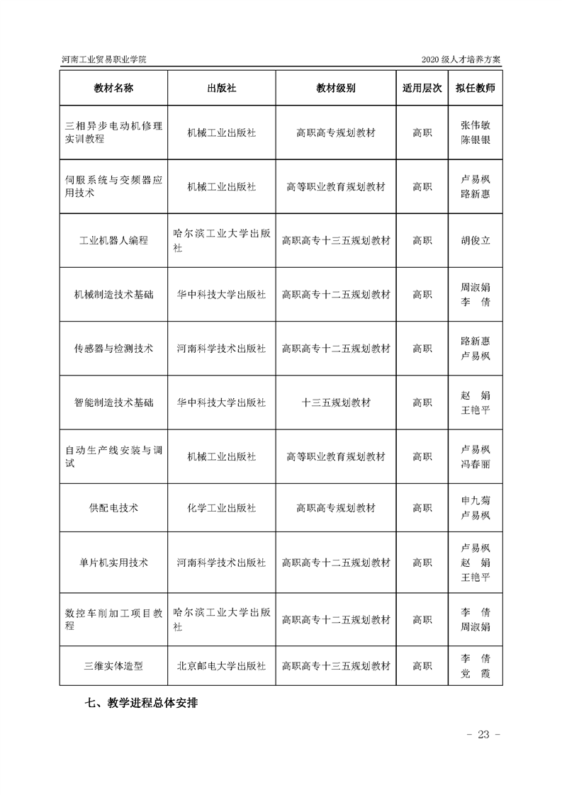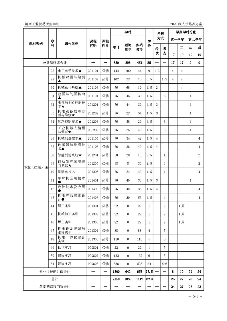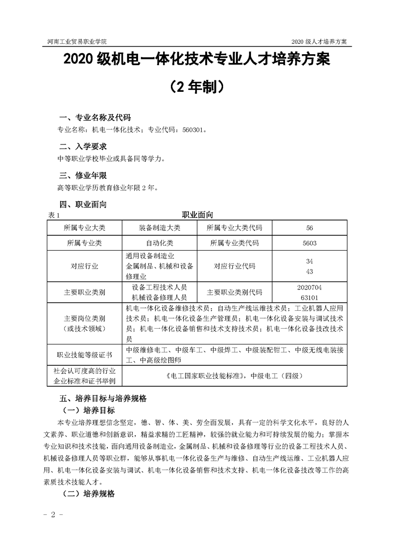 15.2020级机电一体化技术专业(2年制)人才培养方案