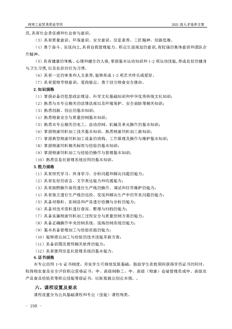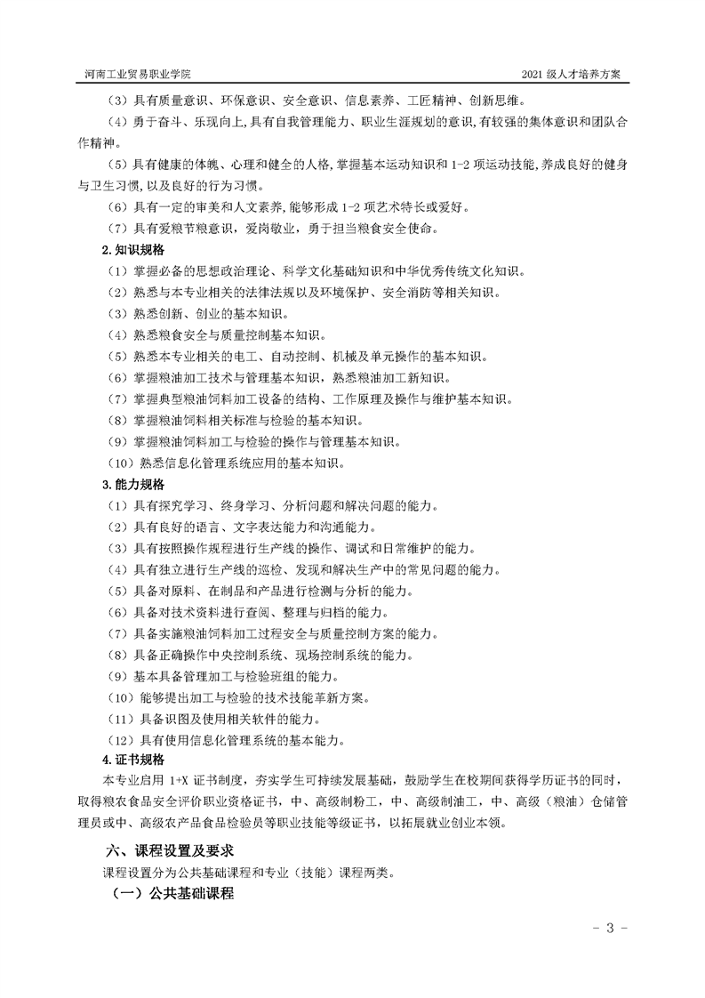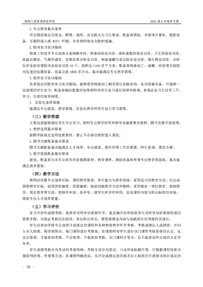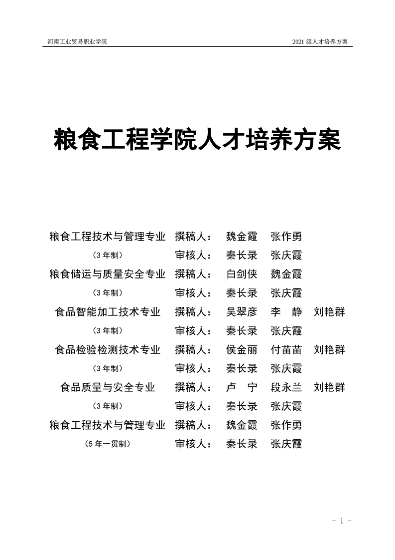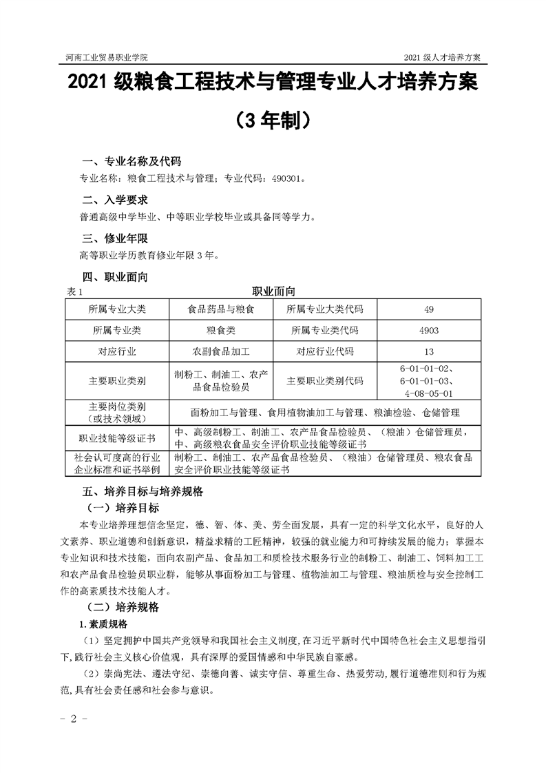1.河南工业贸易职业学院2021级粮食工程学院人才培养方案