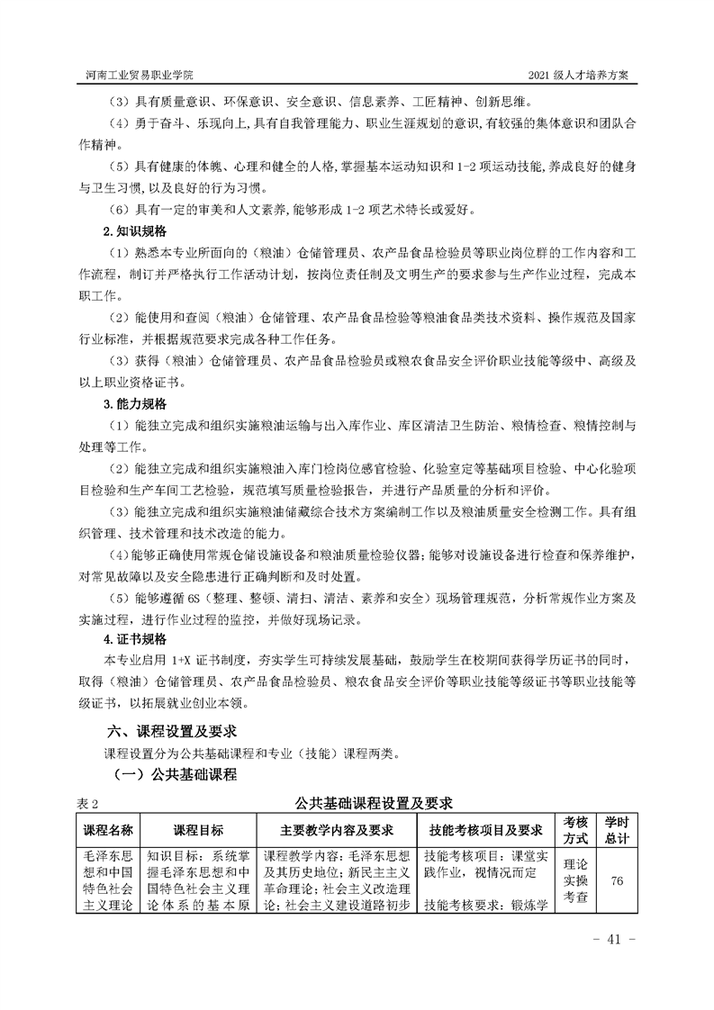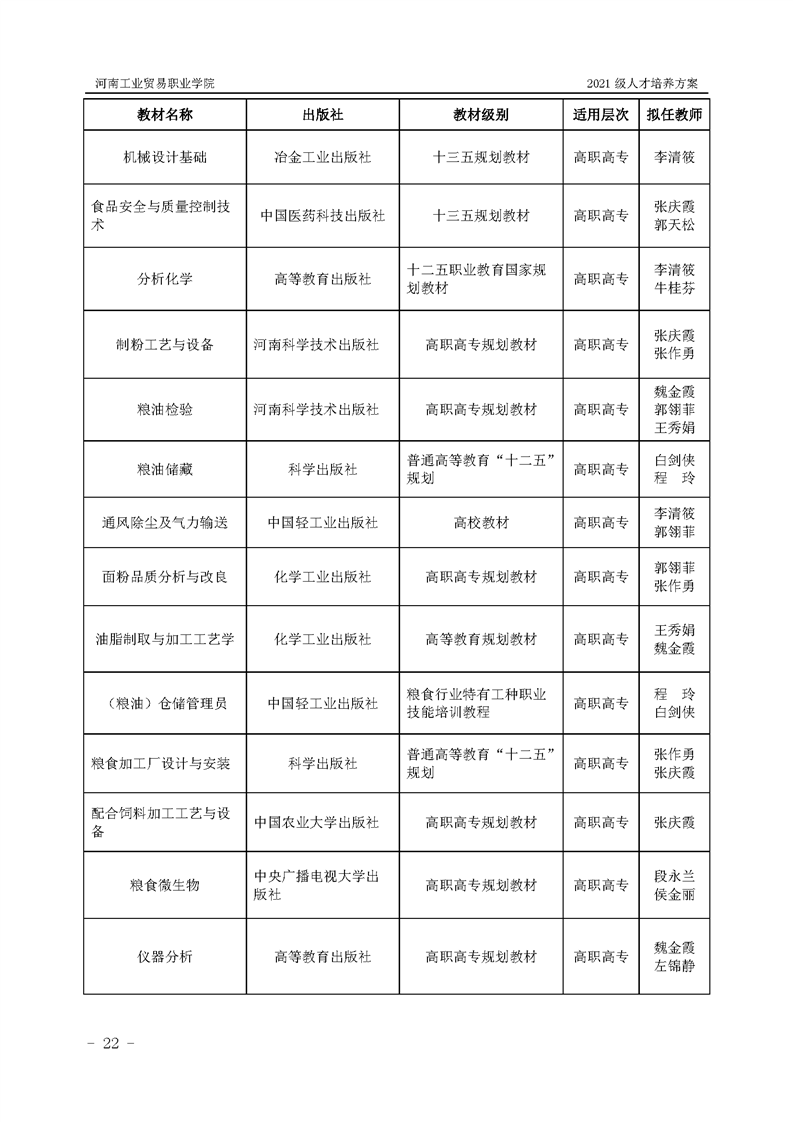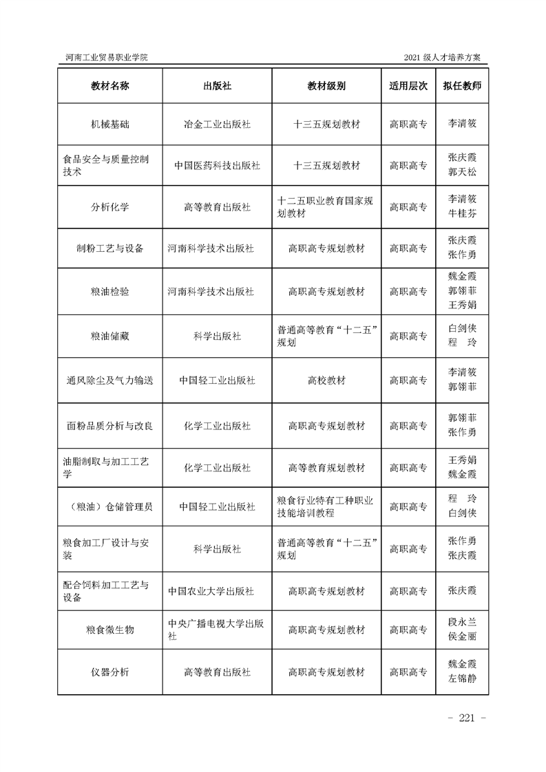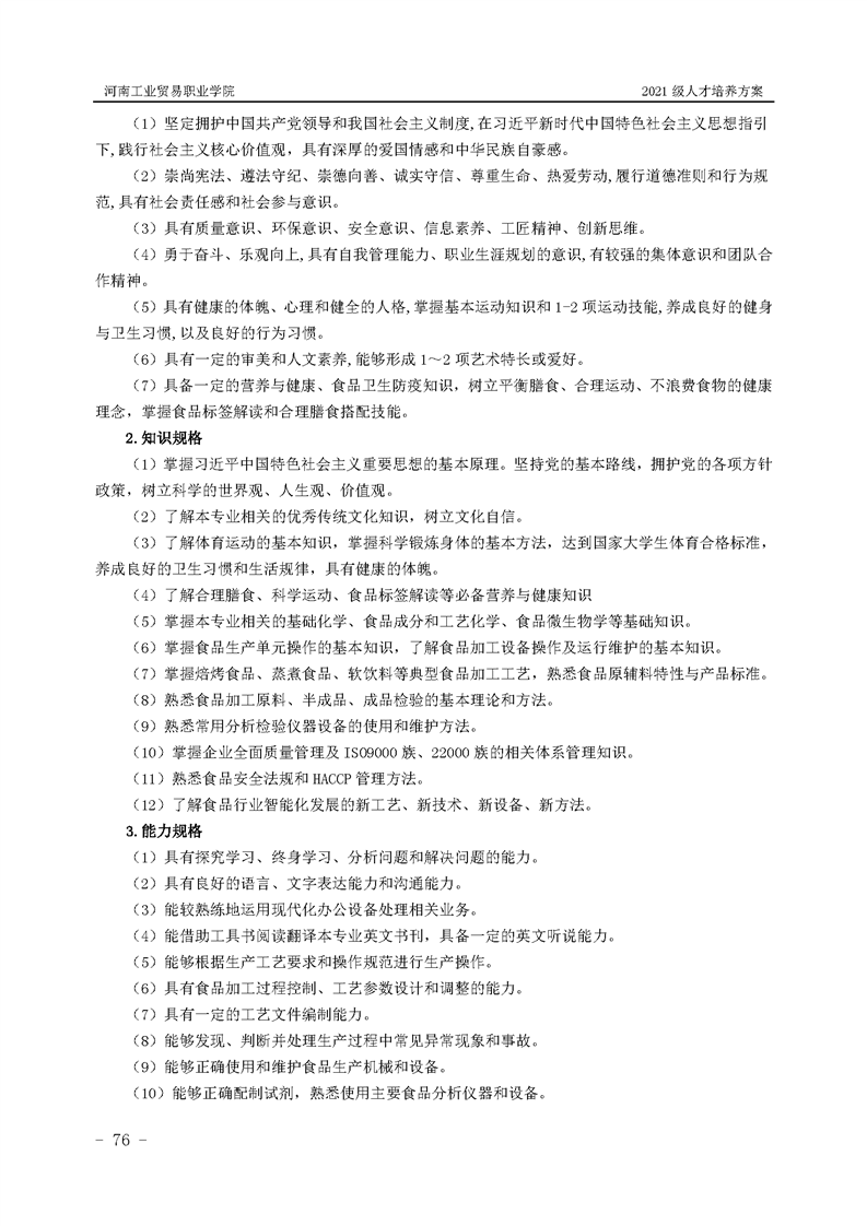 1.河南工业贸易职业学院2021级粮食工程学院人才培养方案