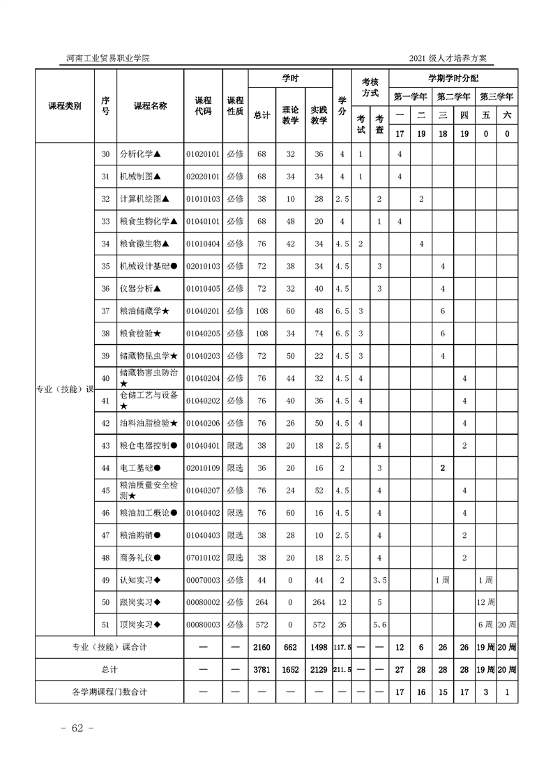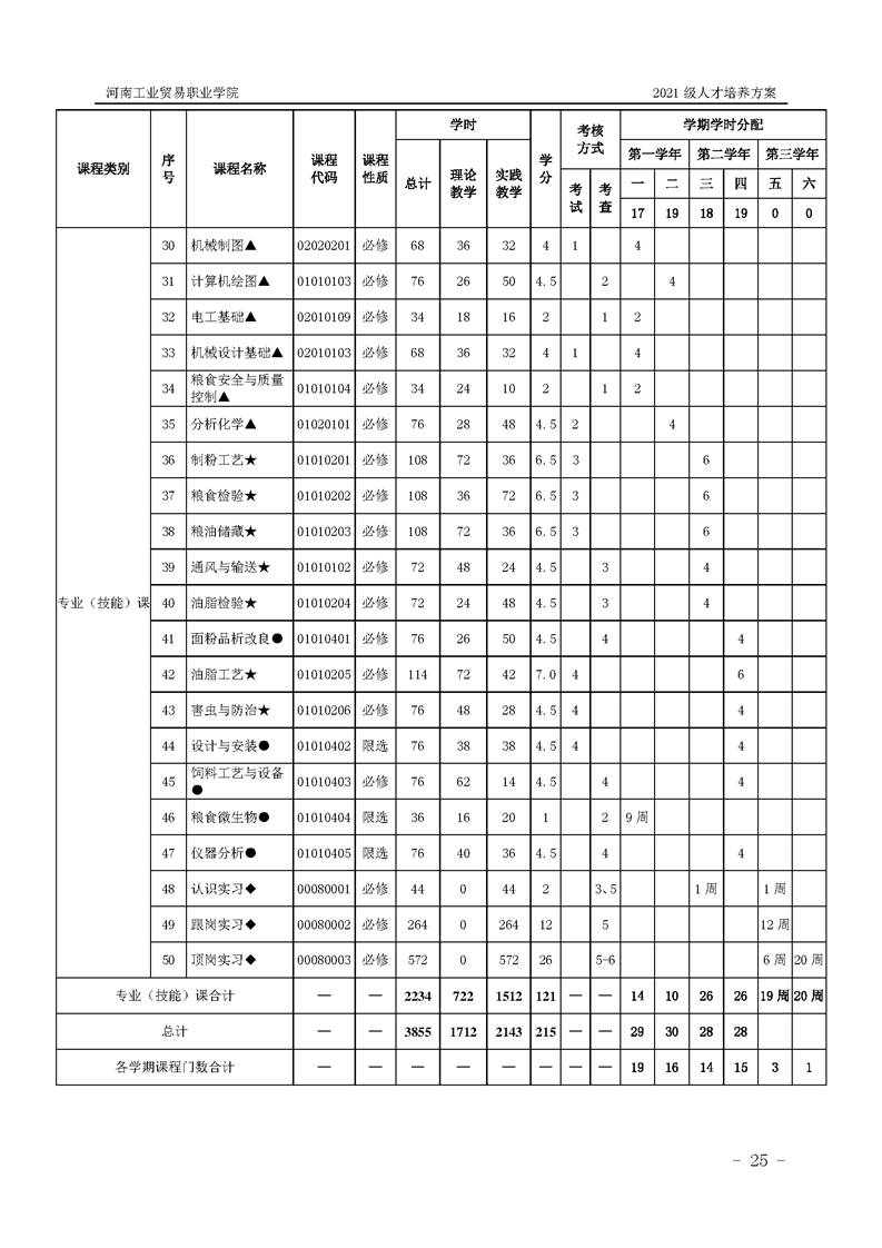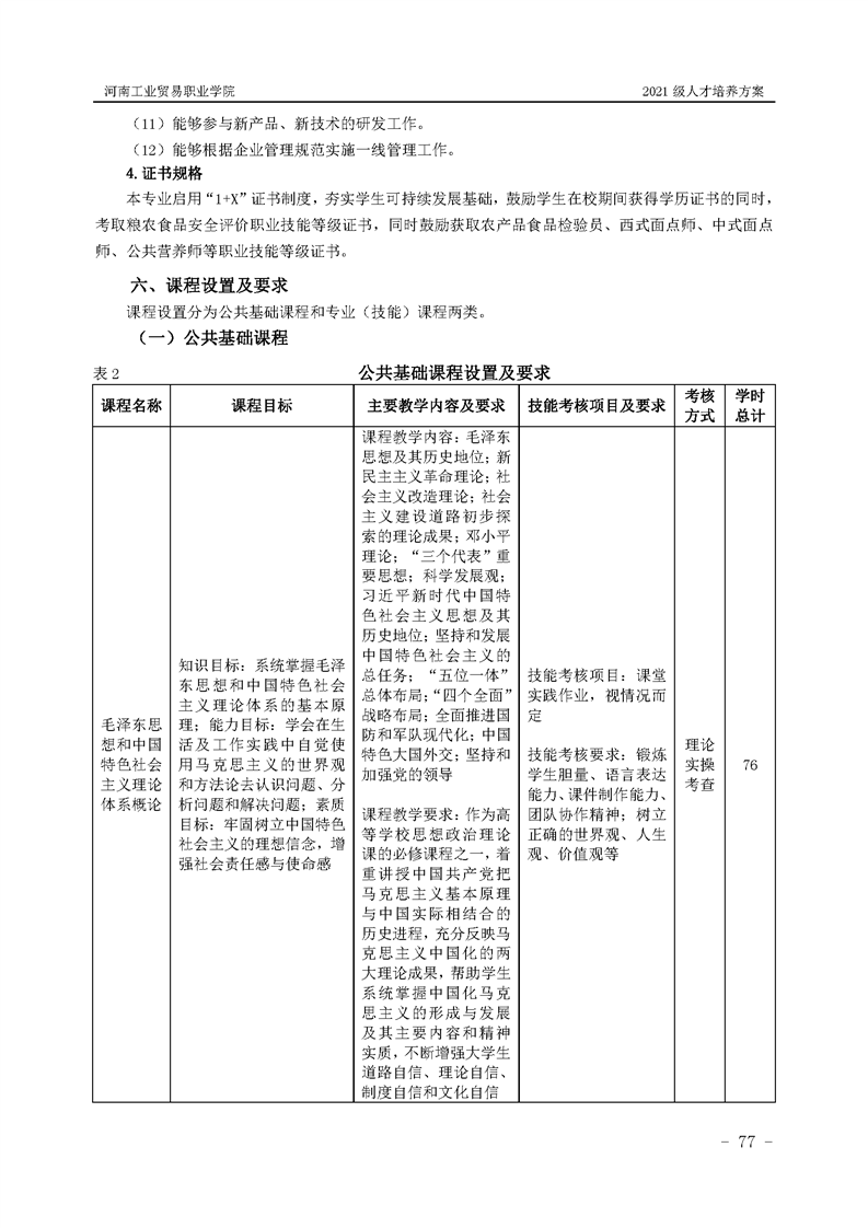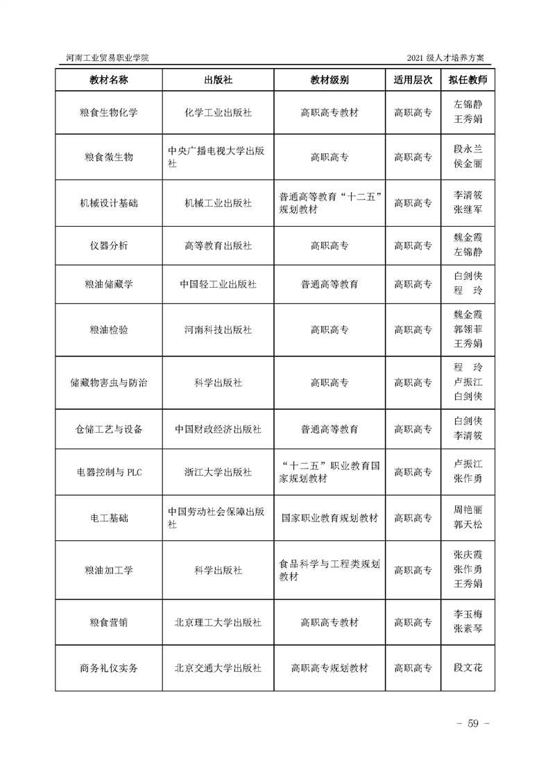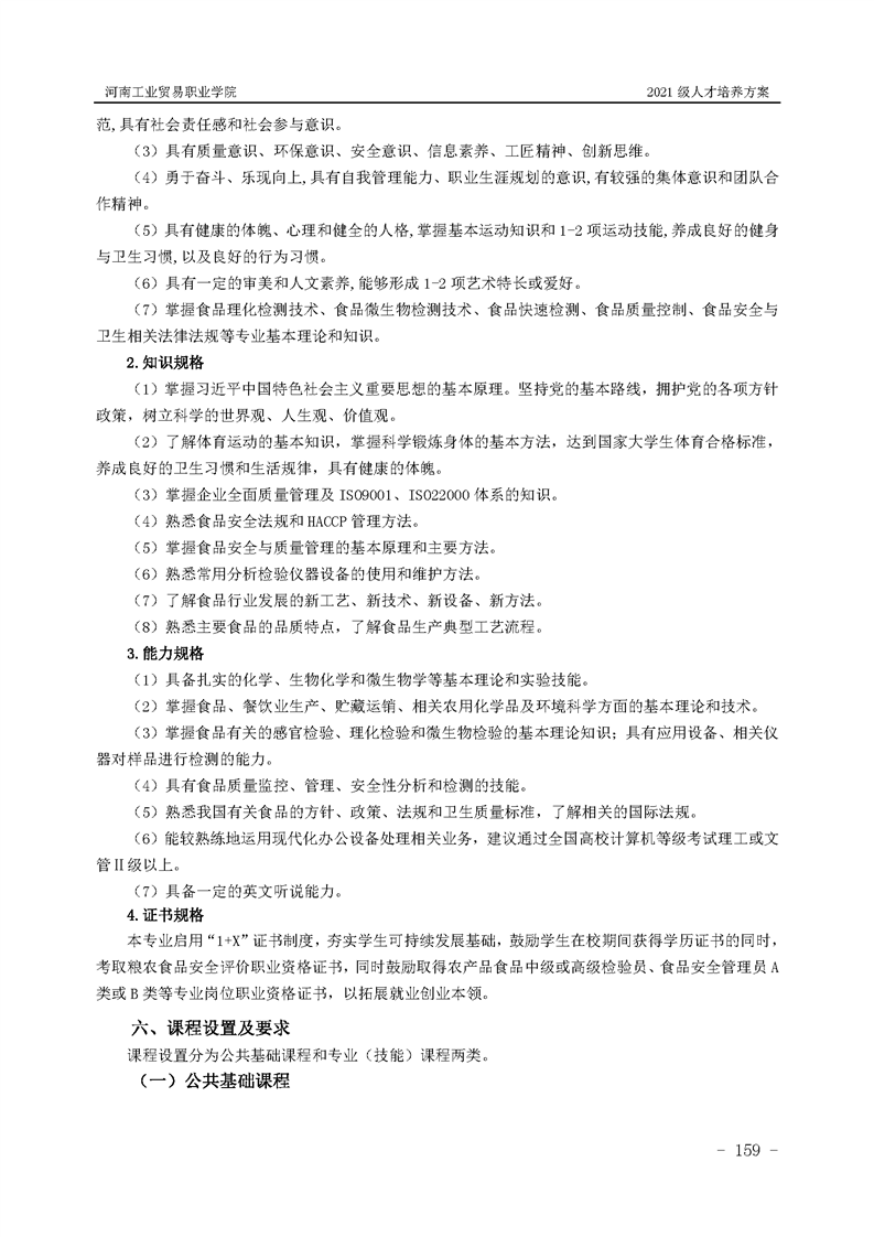 1.河南工业贸易职业学院2021级粮食工程学院人才培养方案