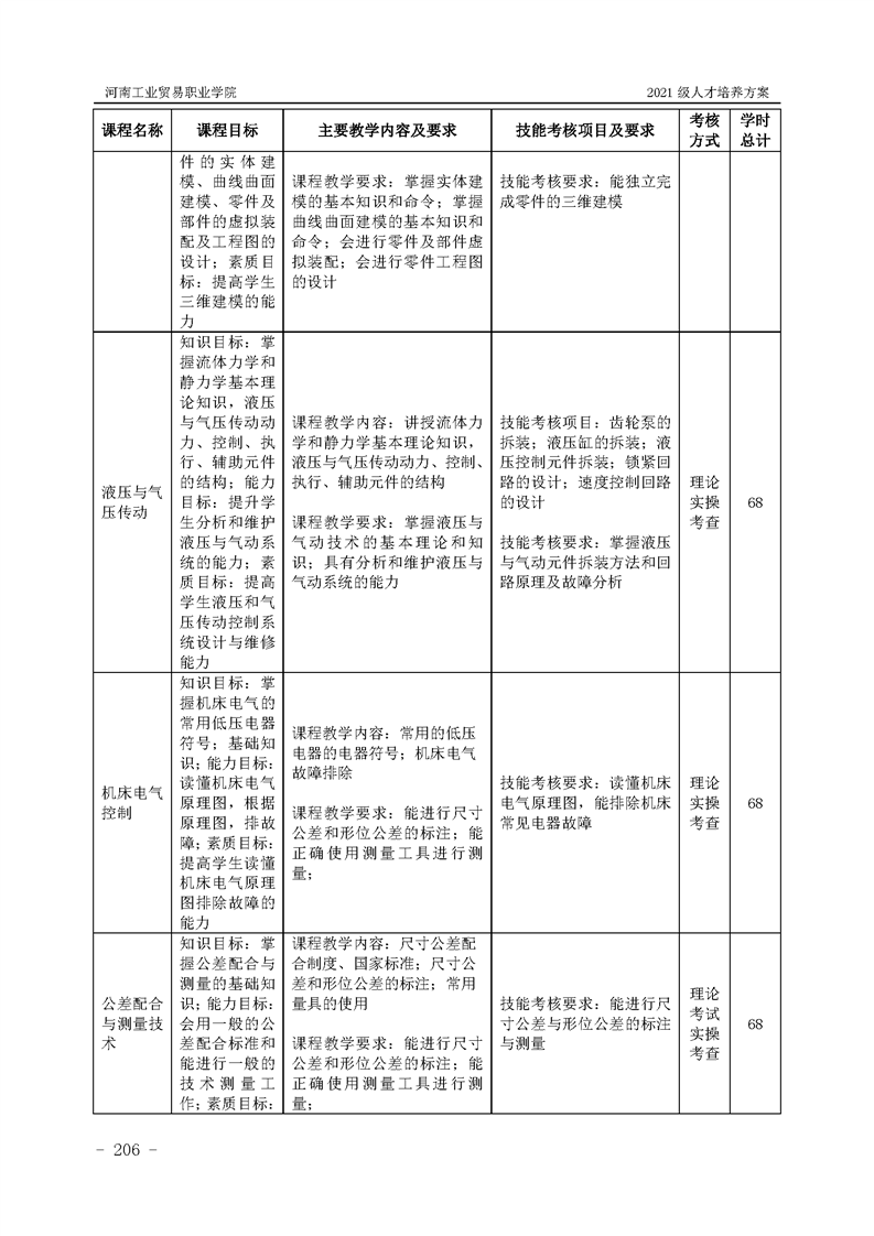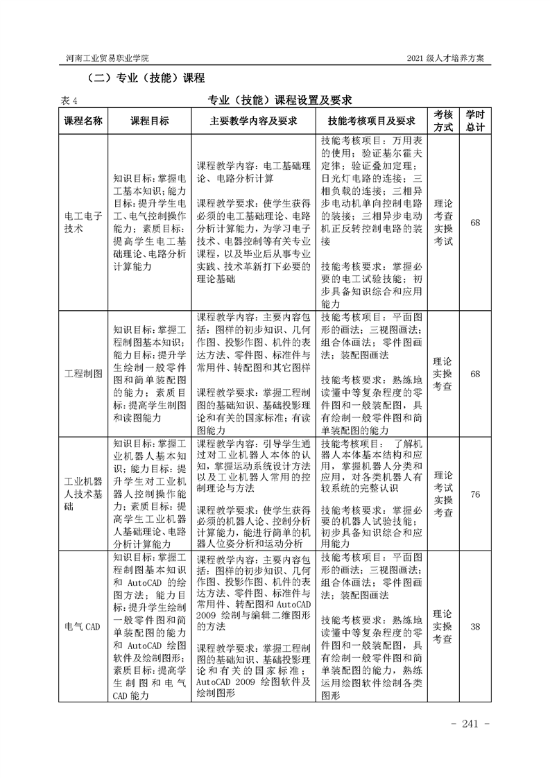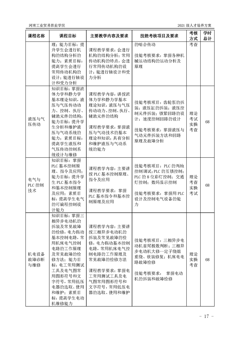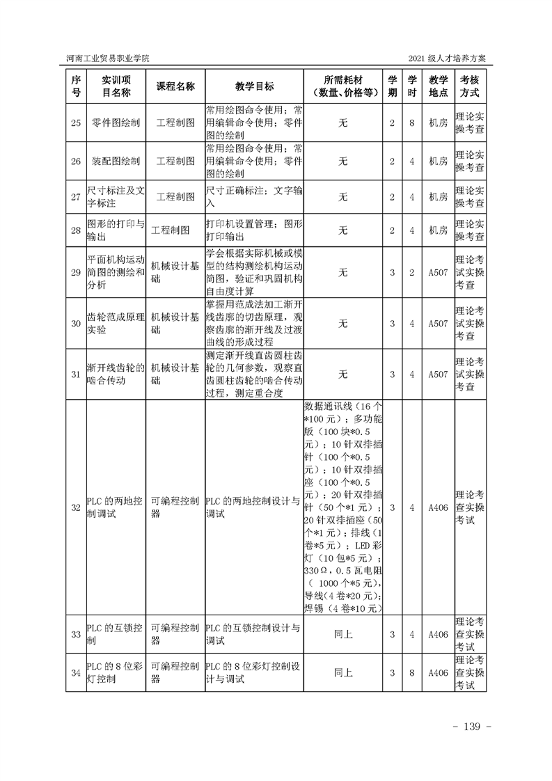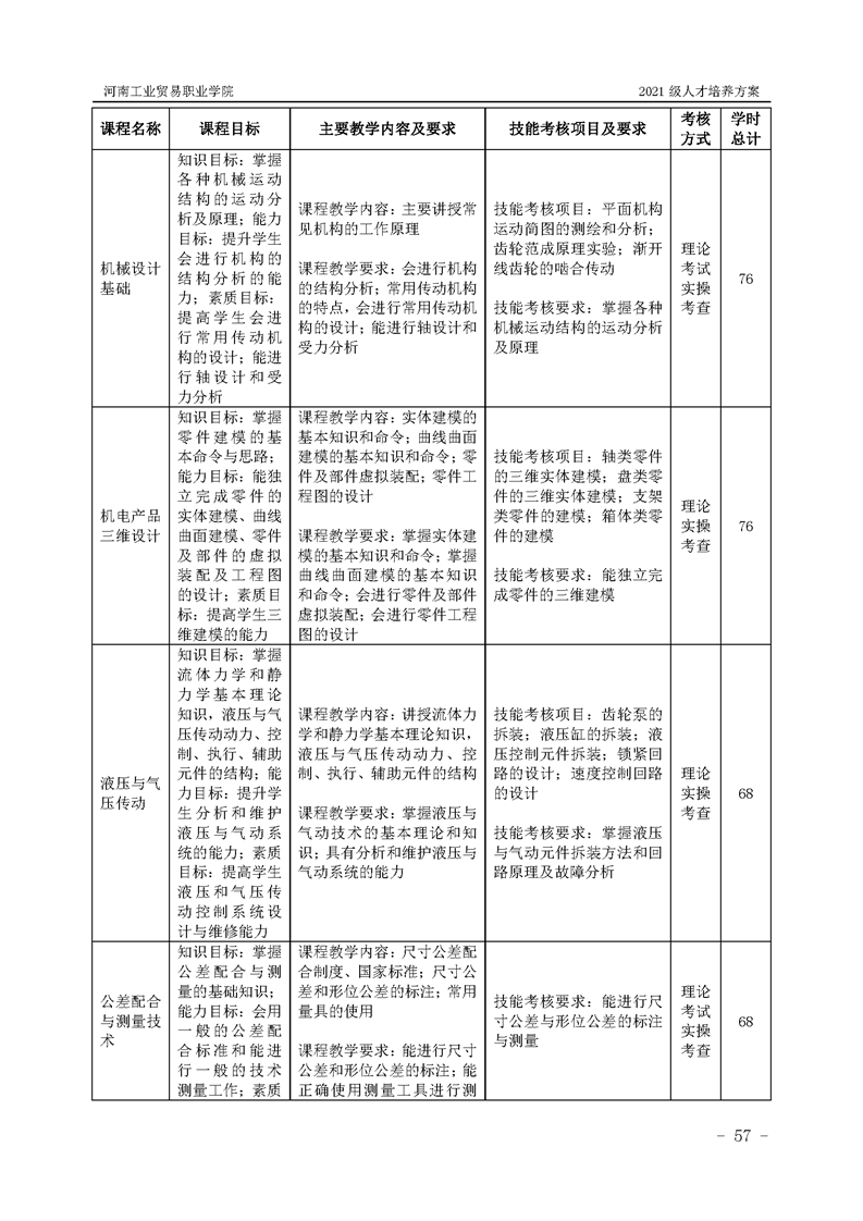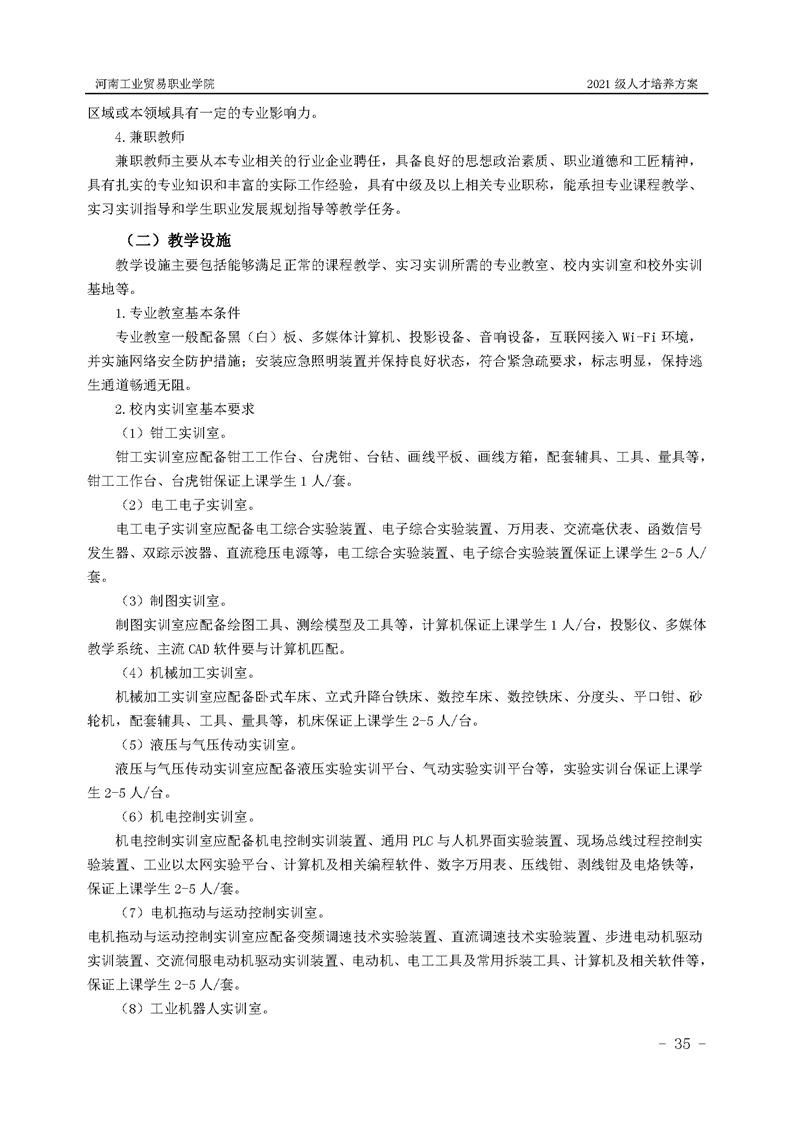 2.河南工业贸易职业学院2021级机电工程学院人才培养方案