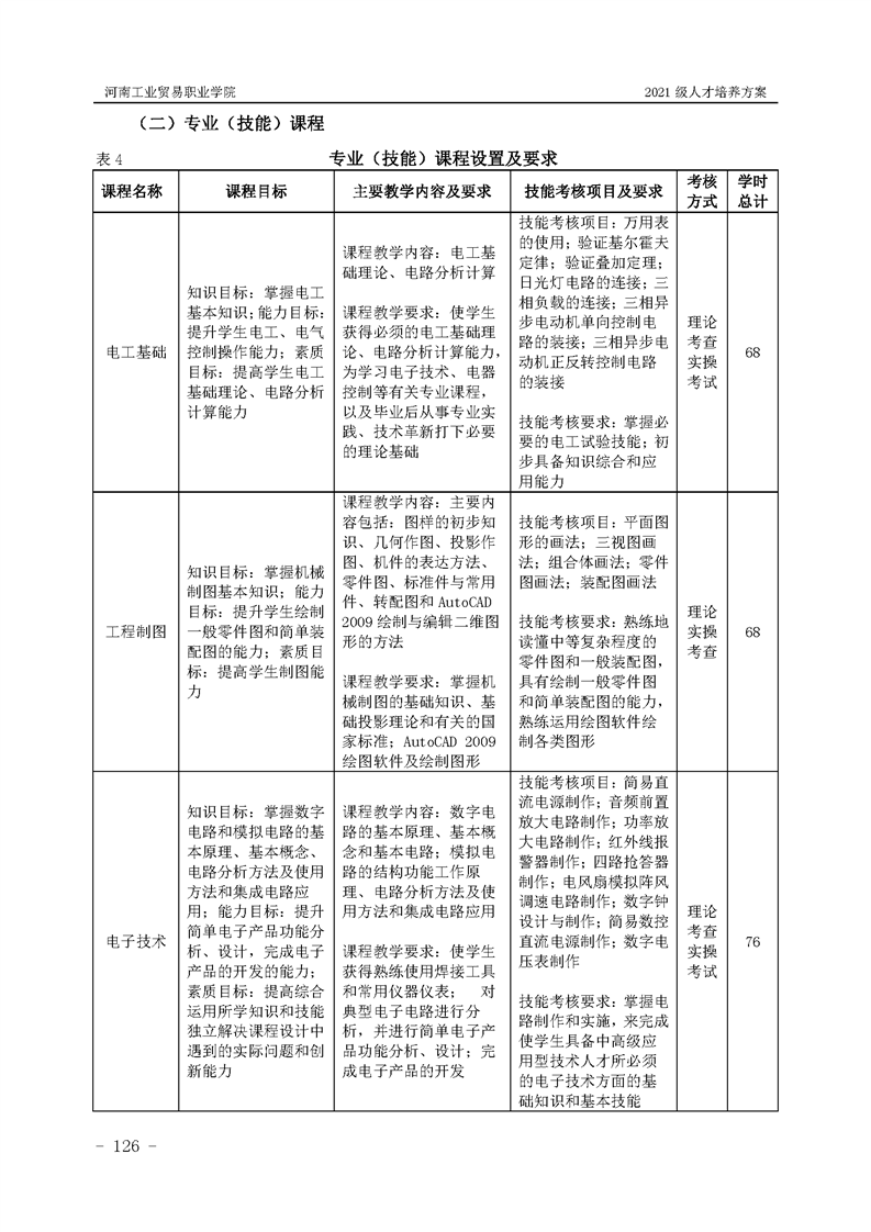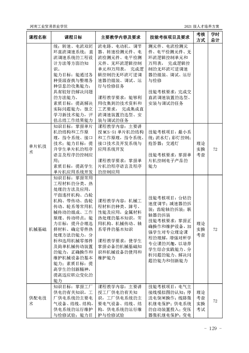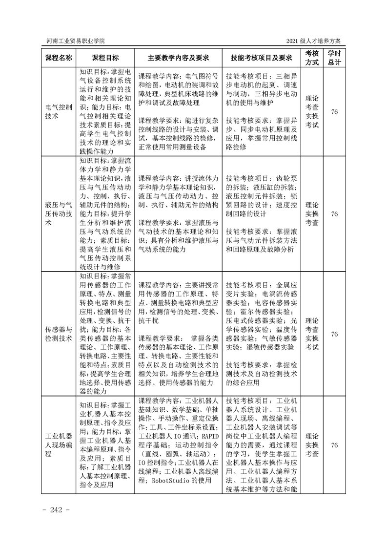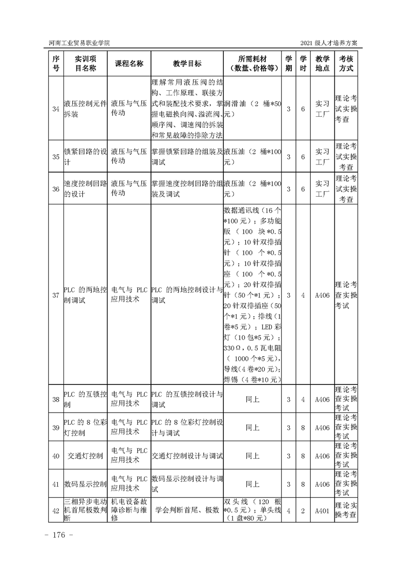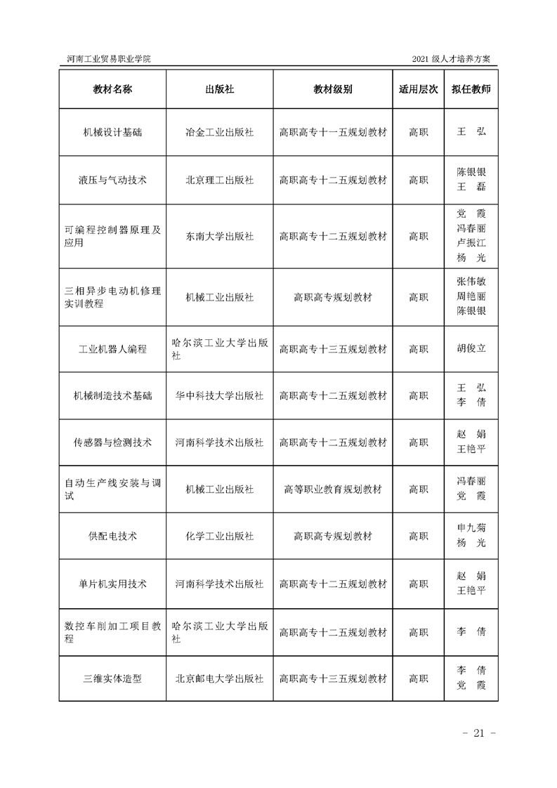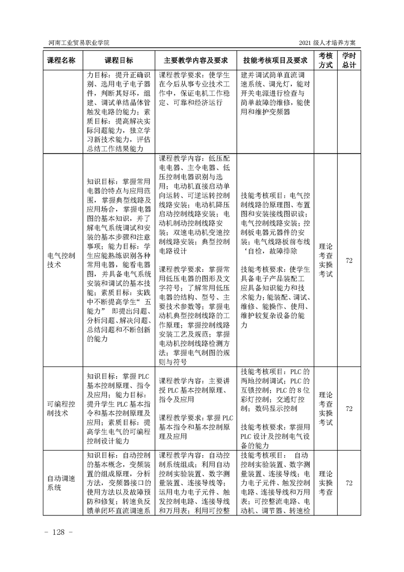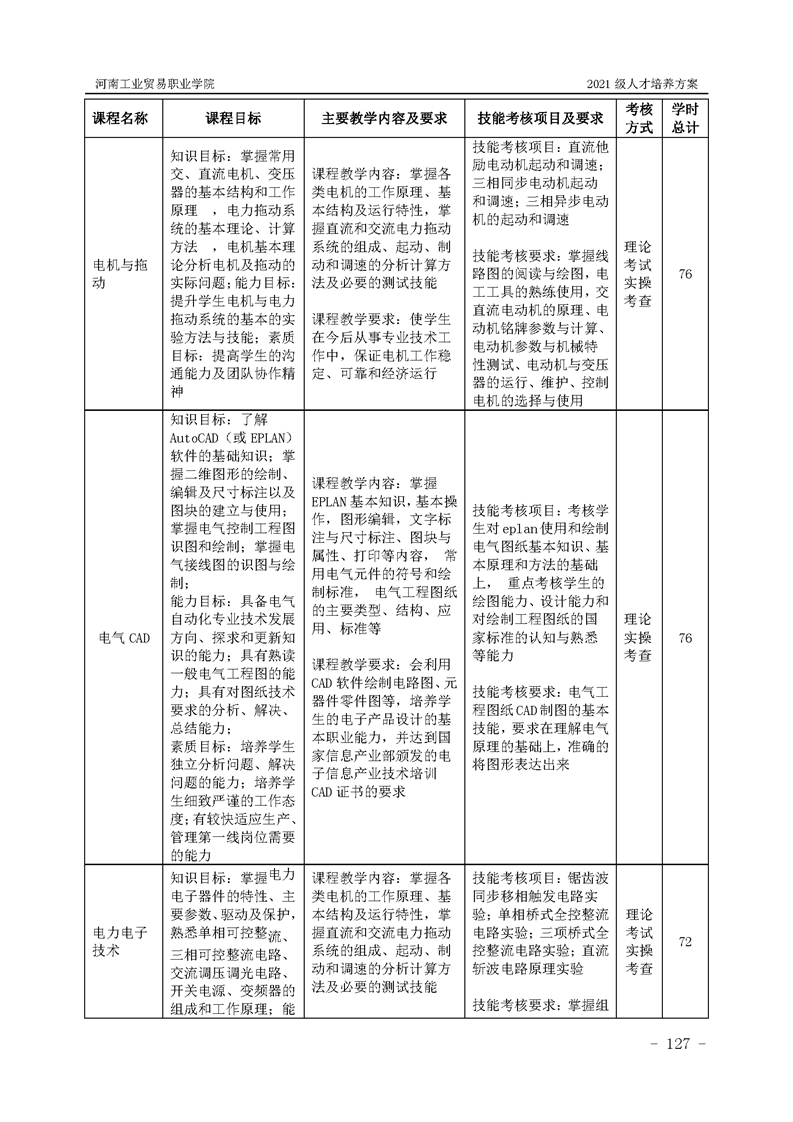 2.河南工业贸易职业学院2021级机电工程学院人才培养方案