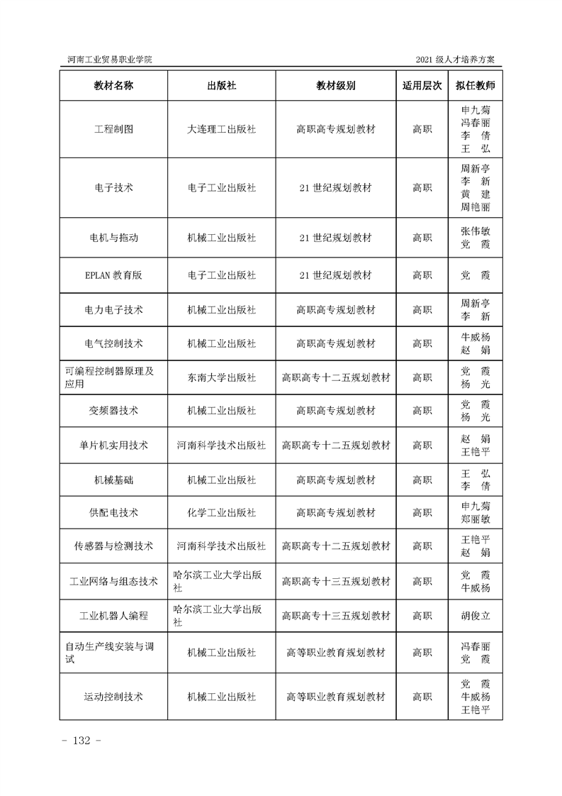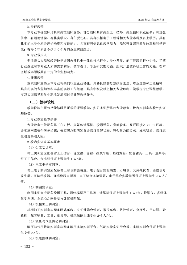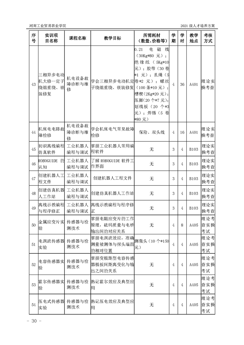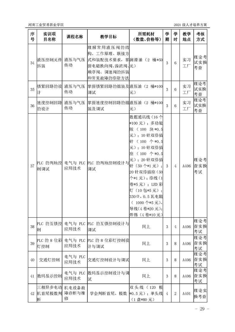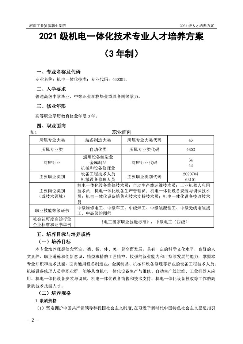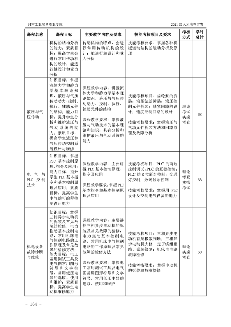 2.河南工业贸易职业学院2021级机电工程学院人才培养方案