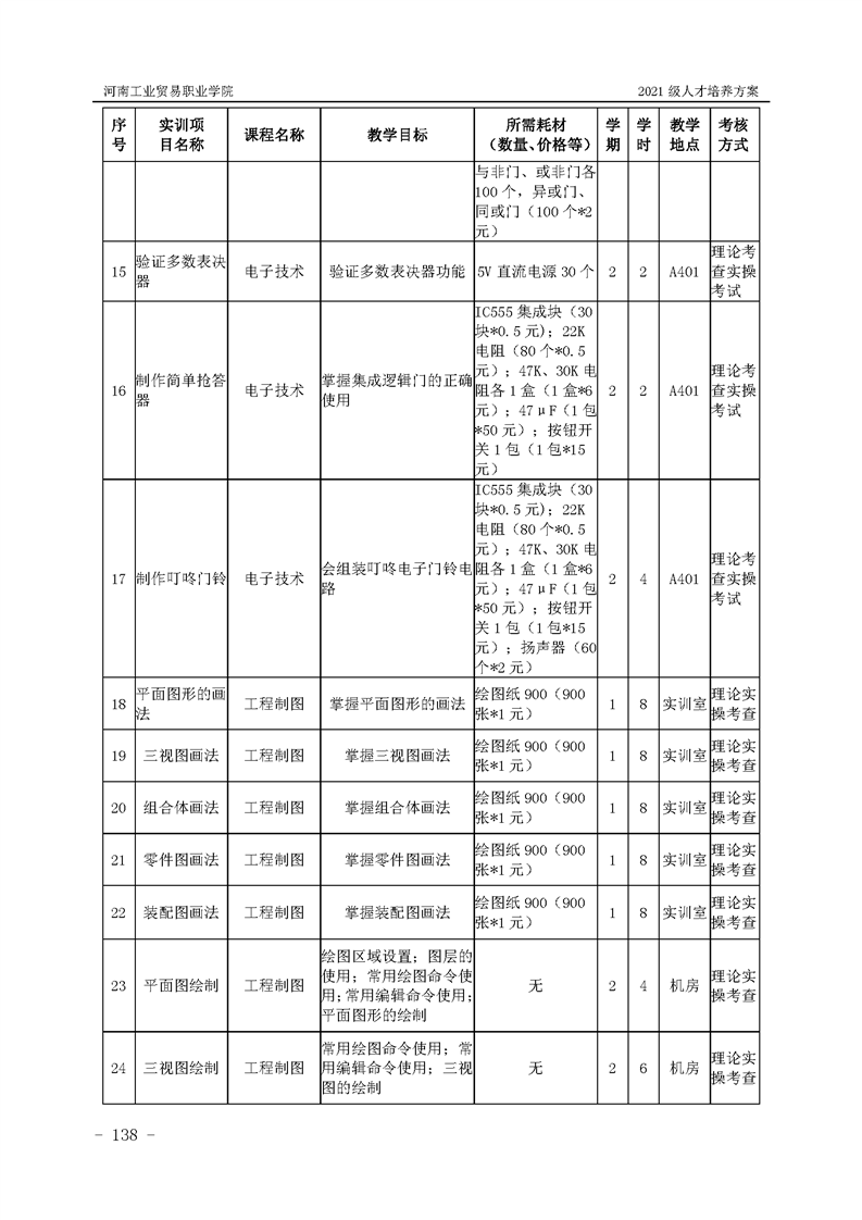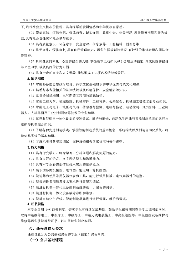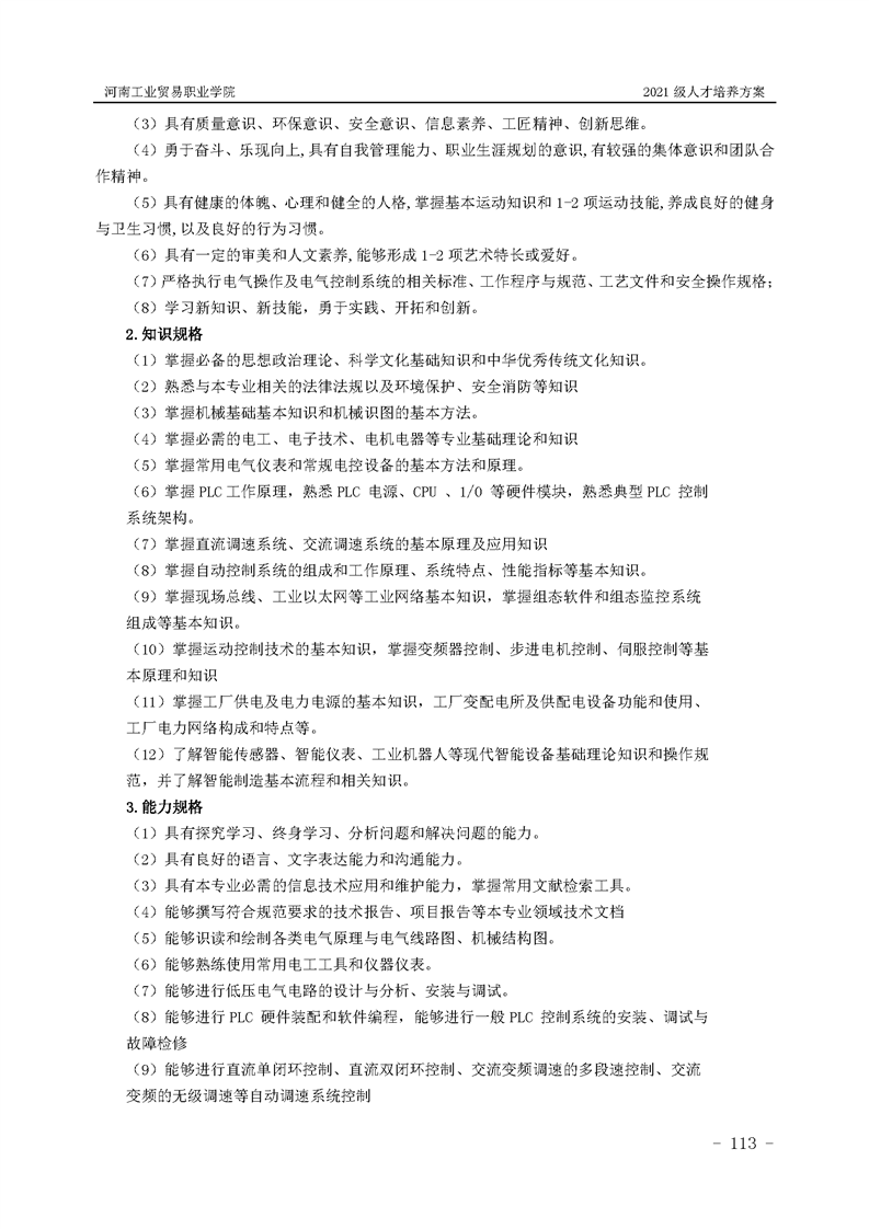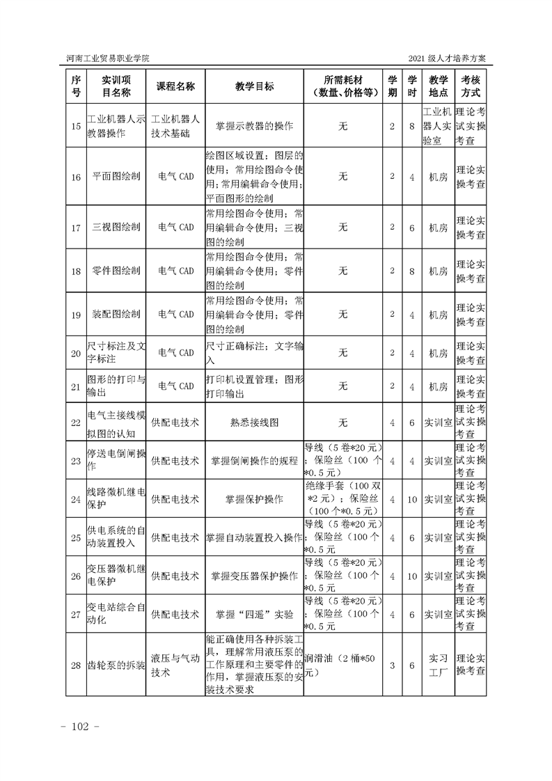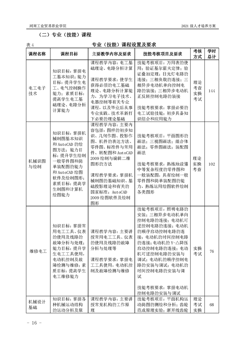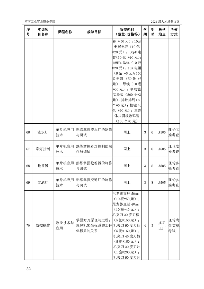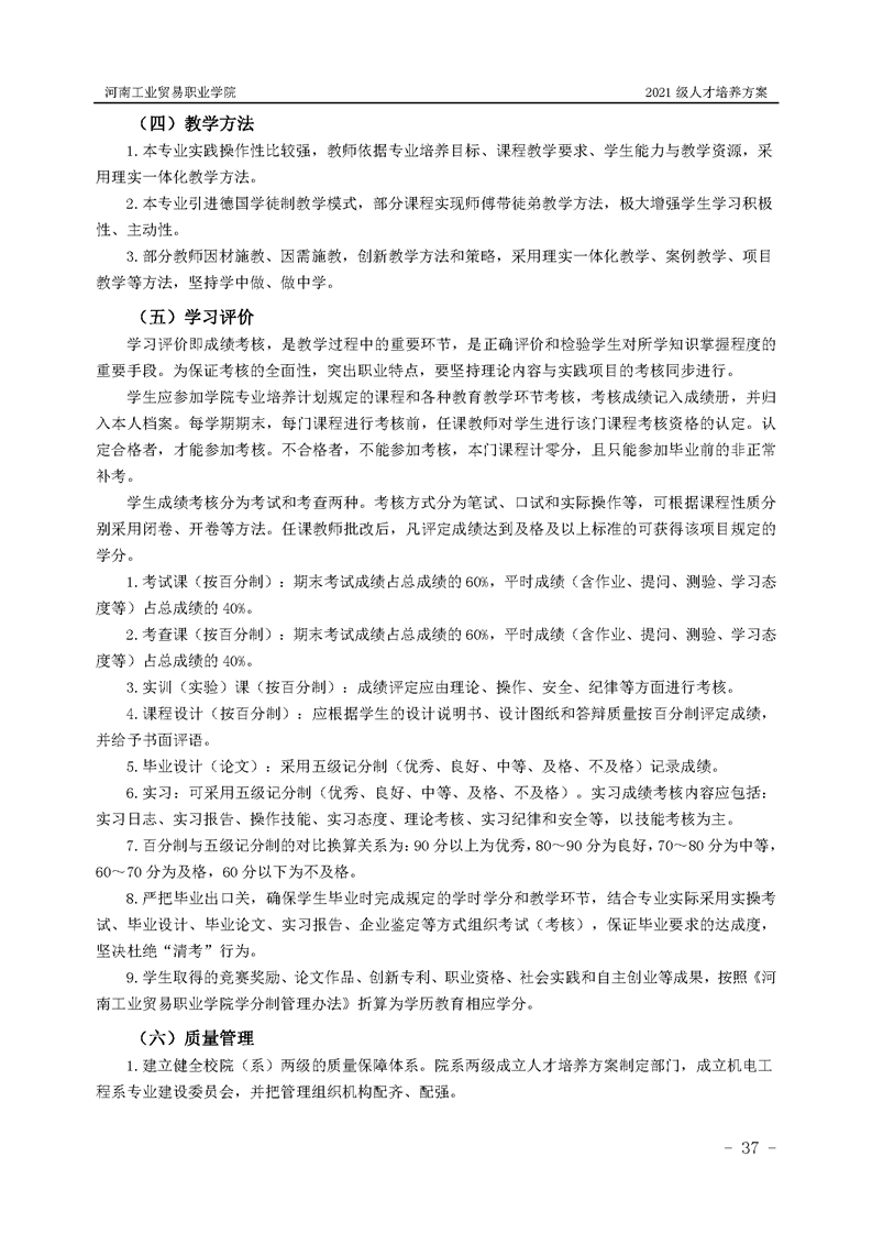 2.河南工业贸易职业学院2021级机电工程学院人才培养方案
