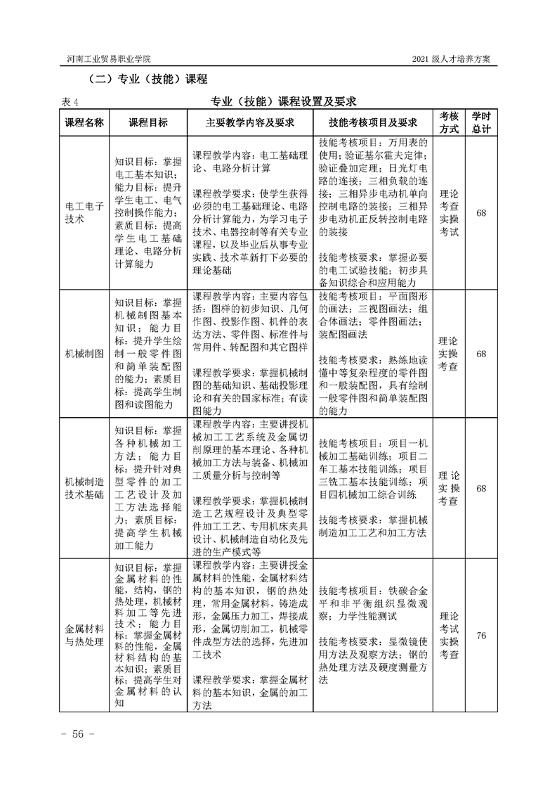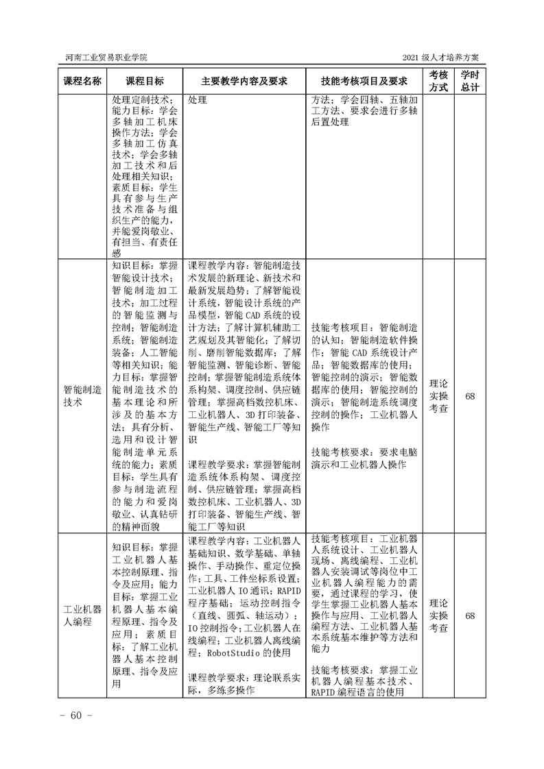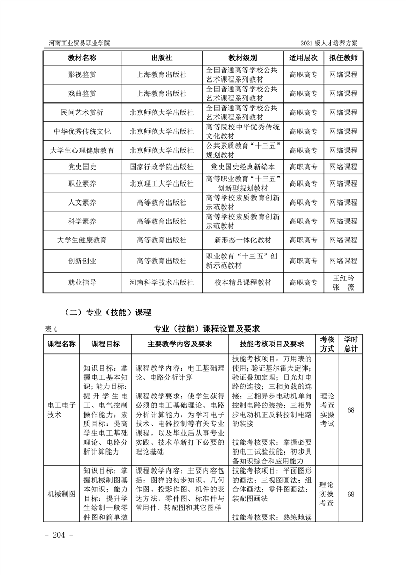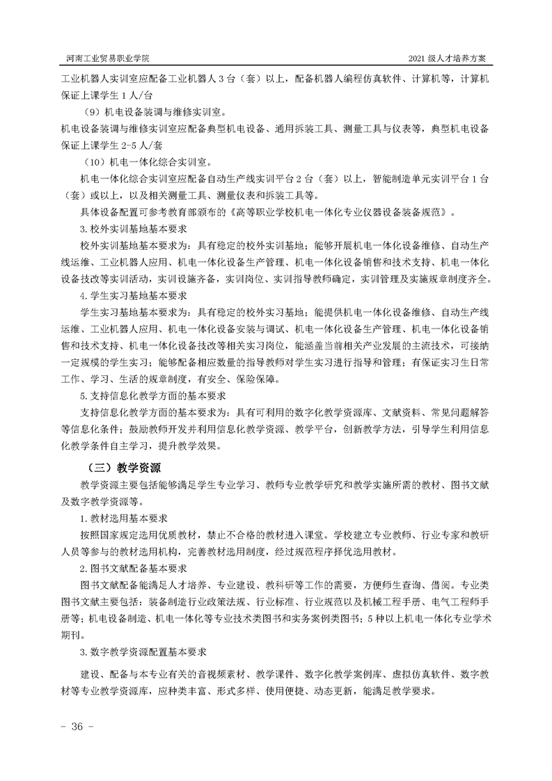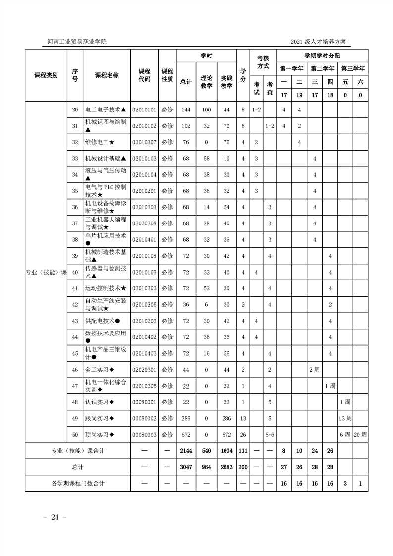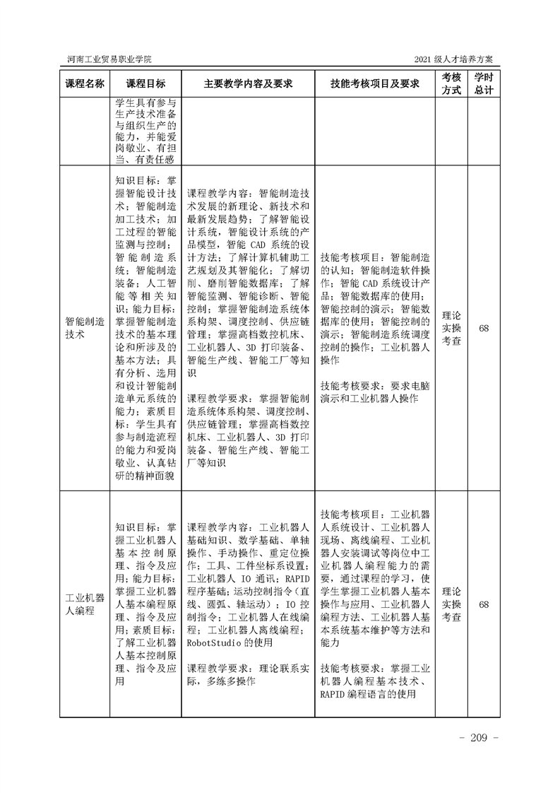 2.河南工业贸易职业学院2021级机电工程学院人才培养方案