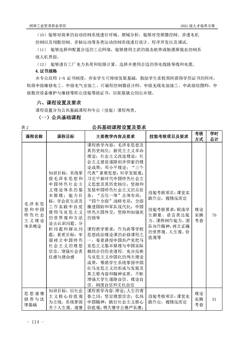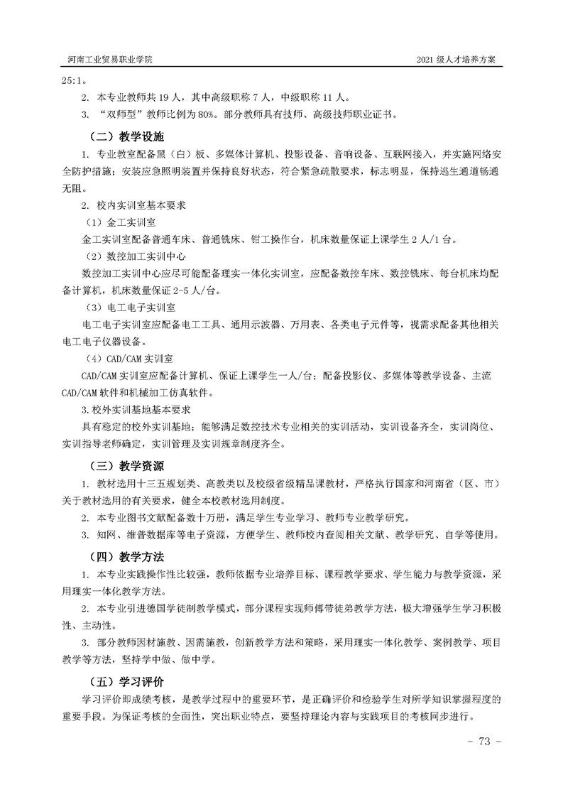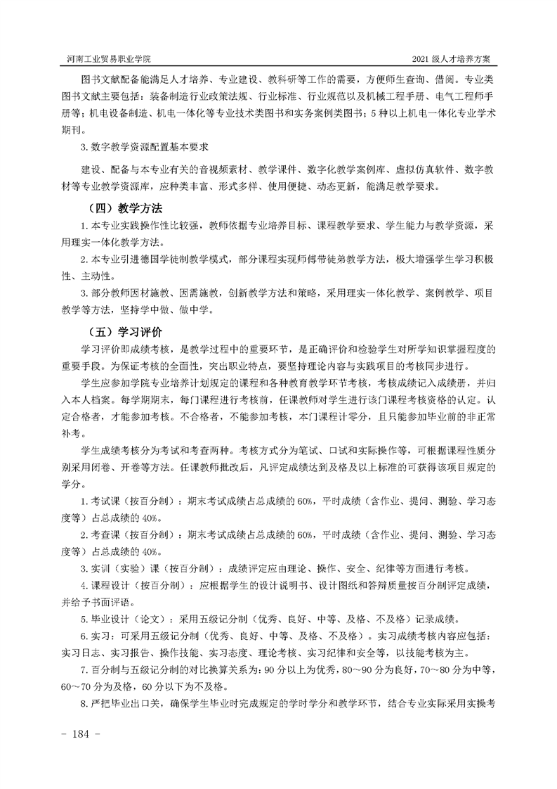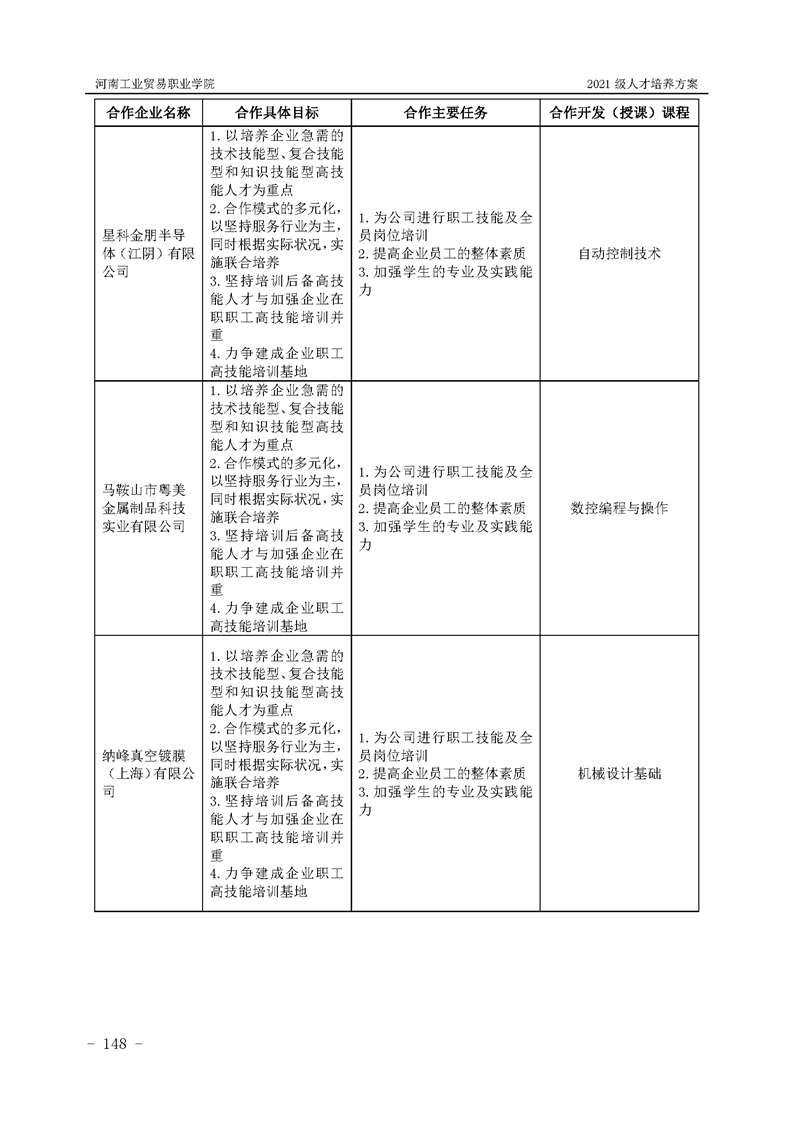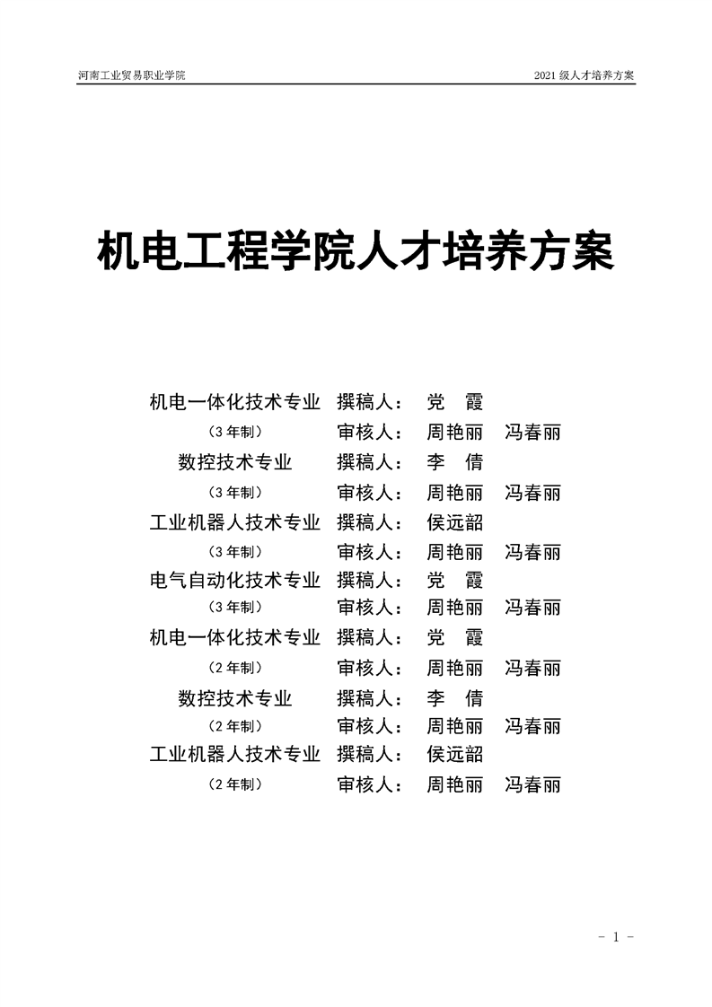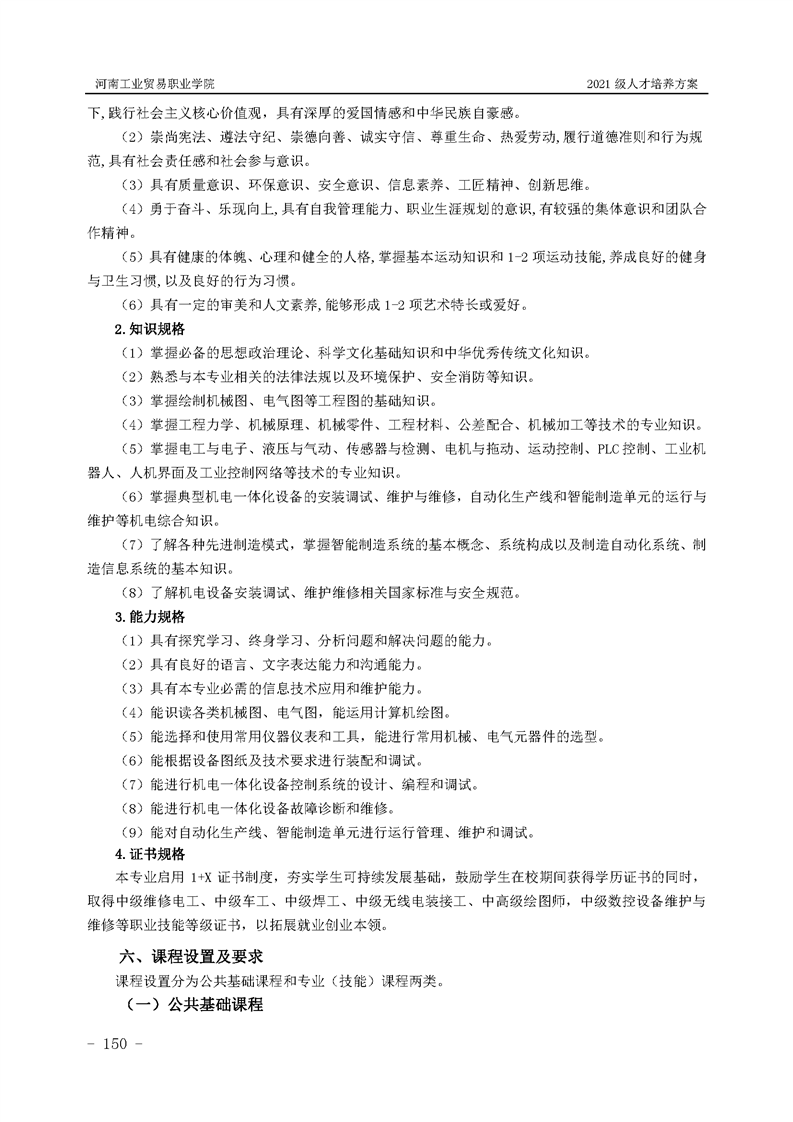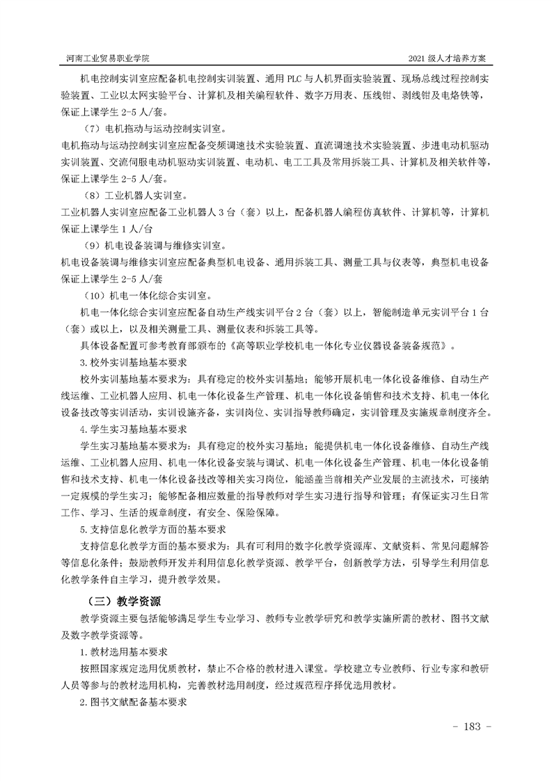 2.河南工业贸易职业学院2021级机电工程学院人才培养方案