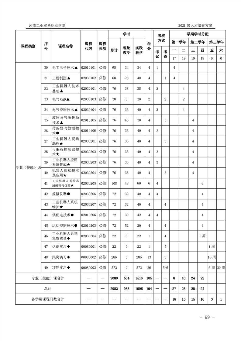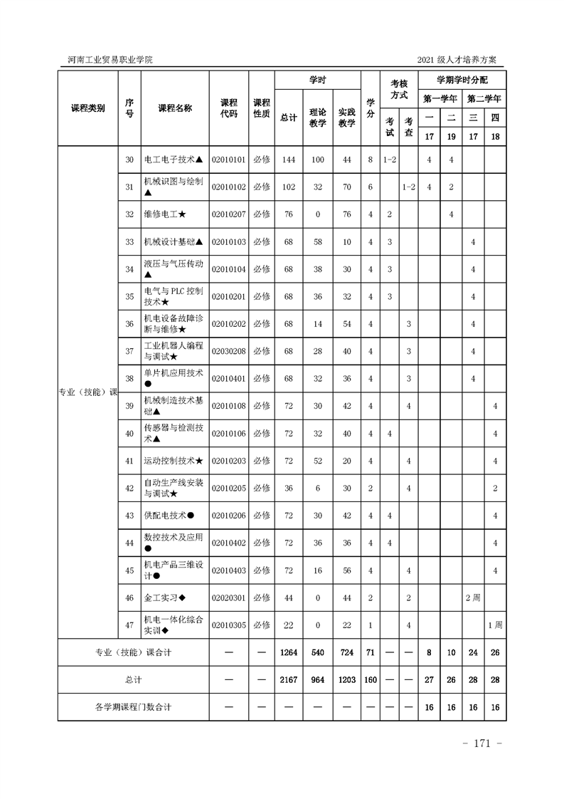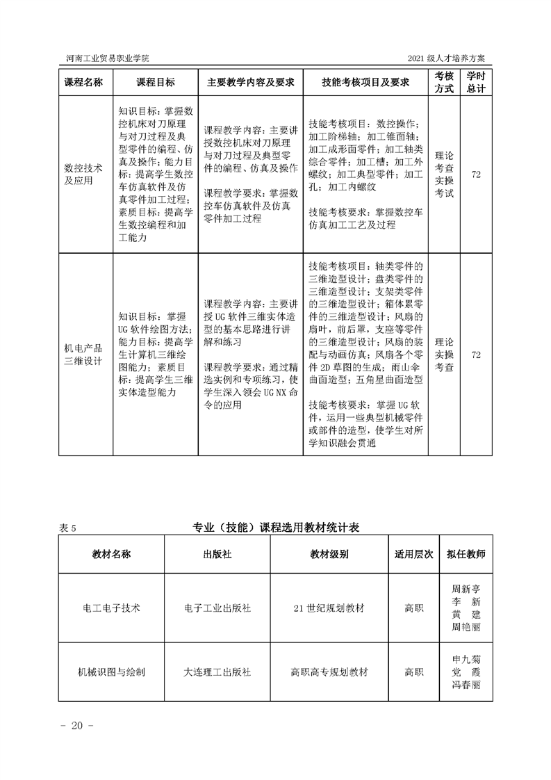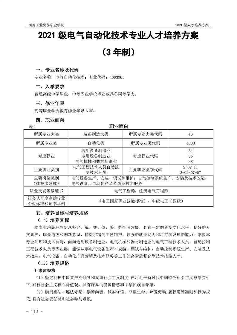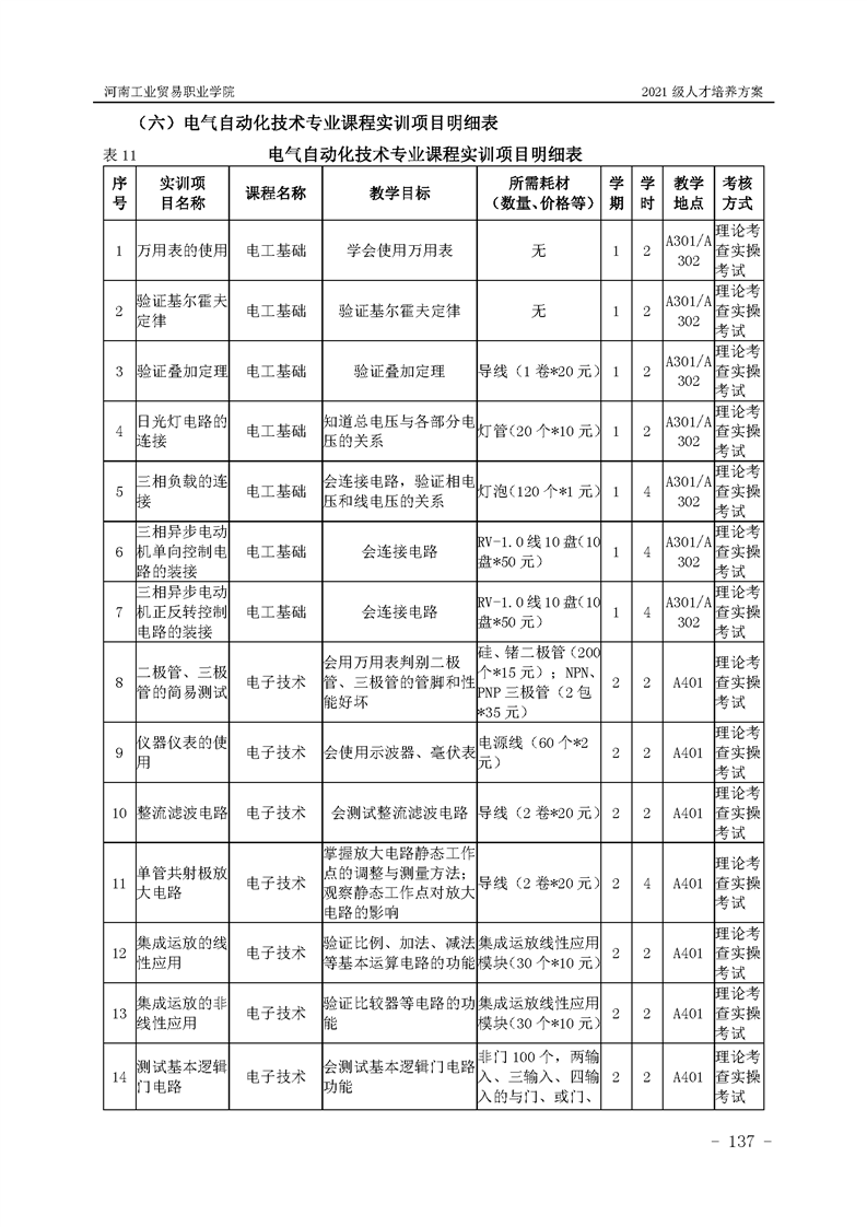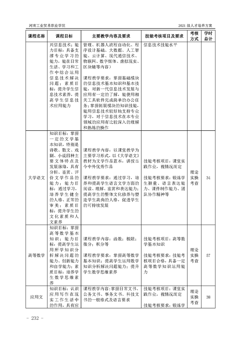 2.河南工业贸易职业学院2021级机电工程学院人才培养方案